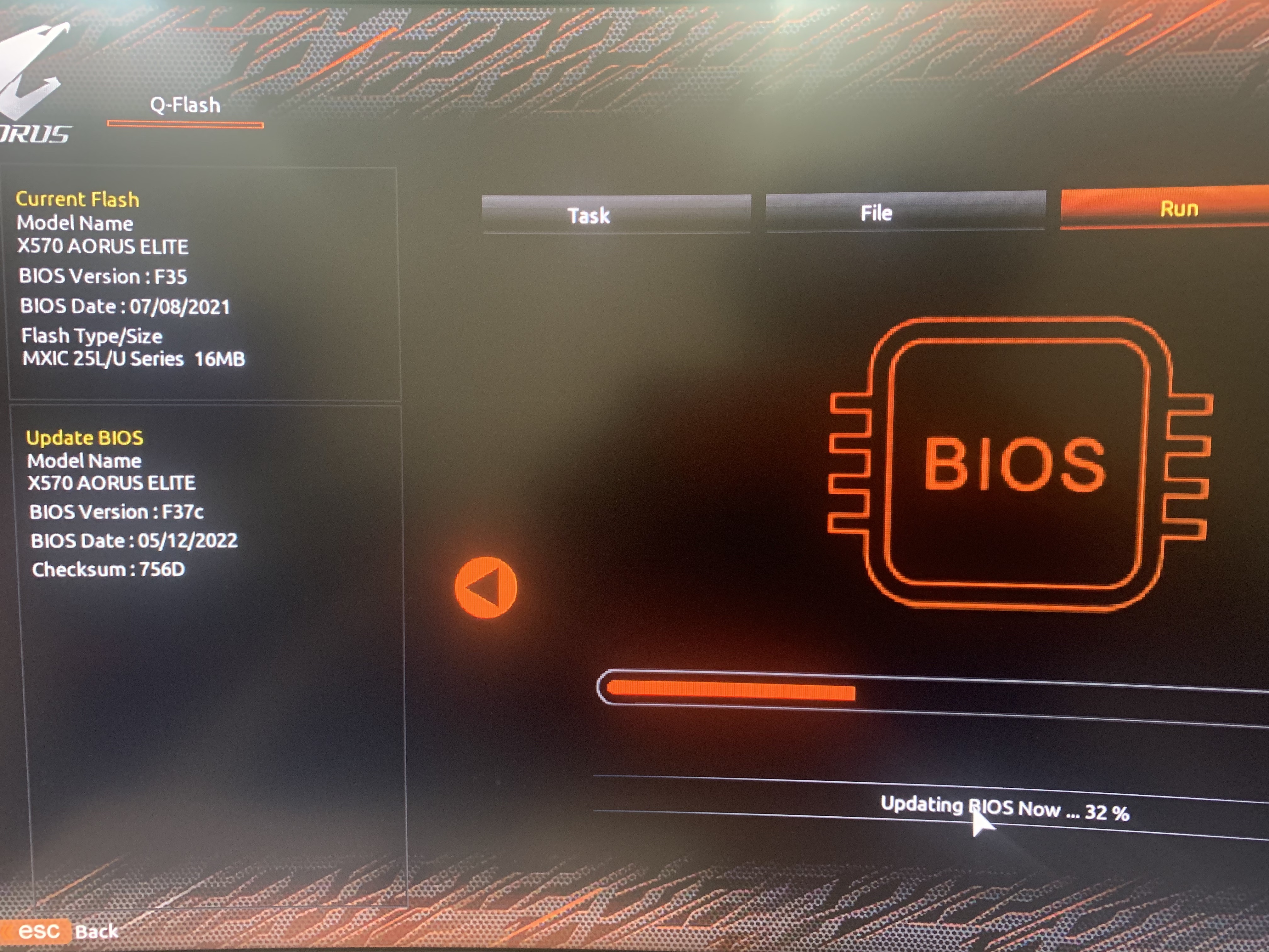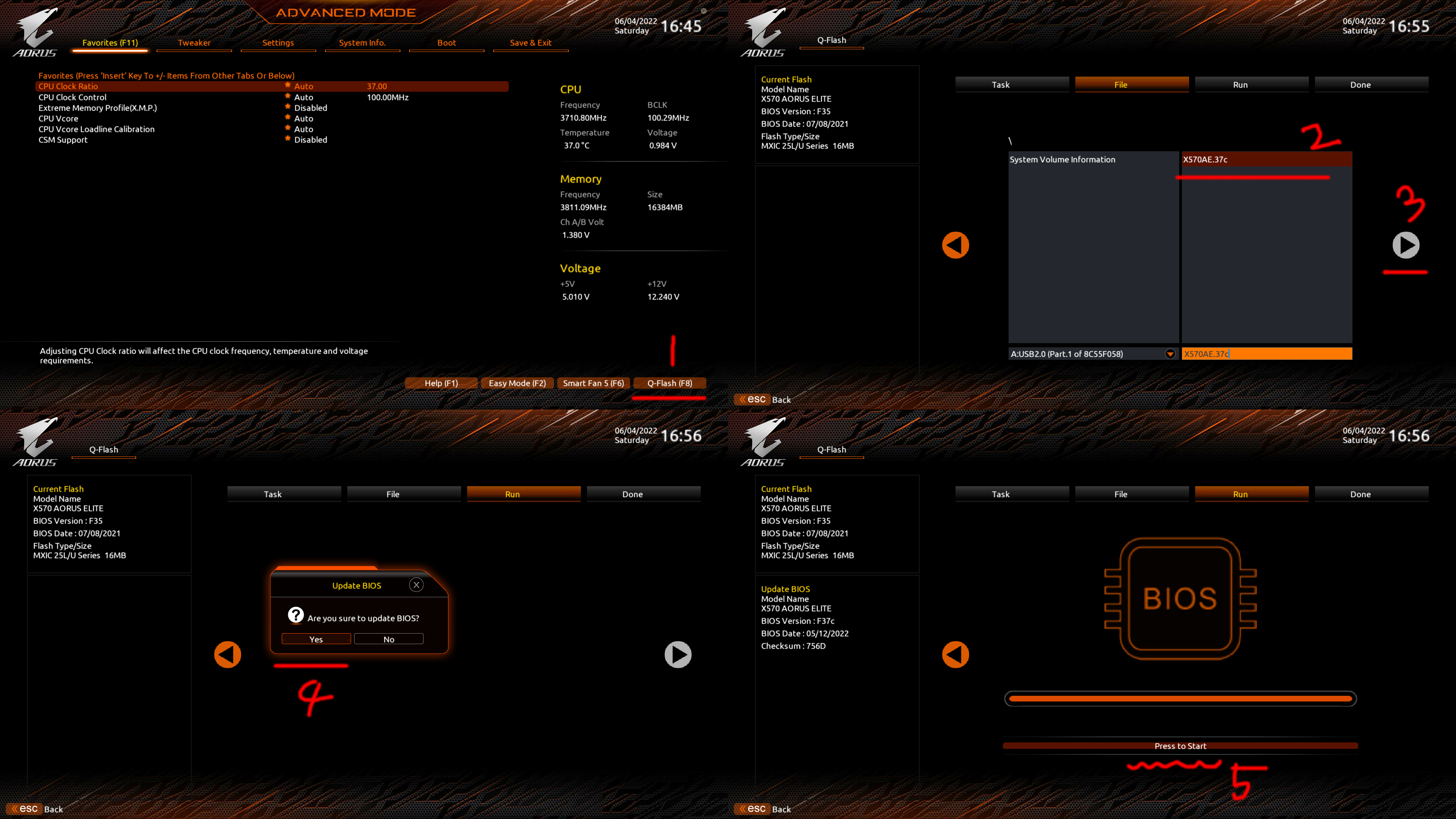 4. 메인보드 제조사 마다 다르겠지만, Q Flash같은 메뉴를 찾고, 업데이트 할 파일(다운받은 파일)을 지정하고 진행합니다.