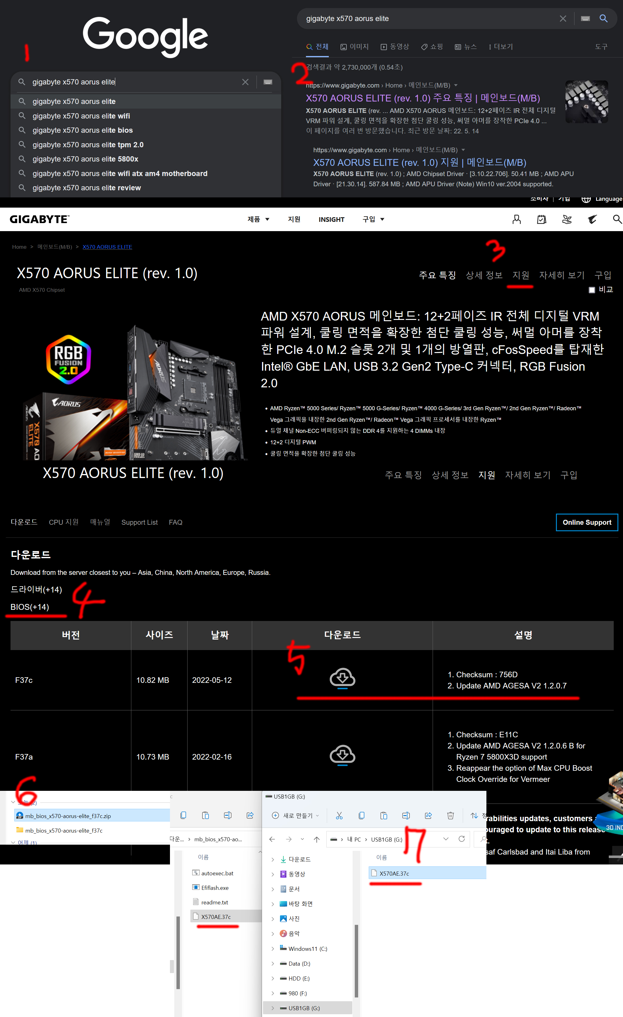 2. 구글 같은 검색창에 메인보드 제조사명과 제품명을 최대한 정확히 검색하면, 결과가 공식 사이트가 가장 위에 나올겁니다. 모든 제조사들은 [지원]이라는 글자가 있습니다. 그리고는 바이오스 파일을 찾아서 다운 받습니다.