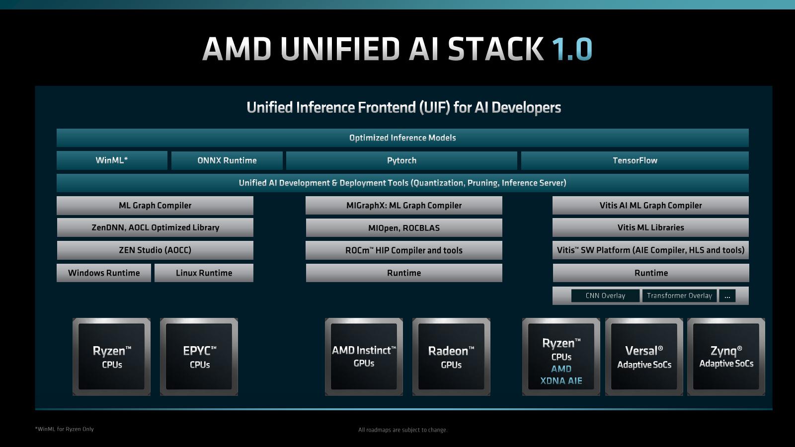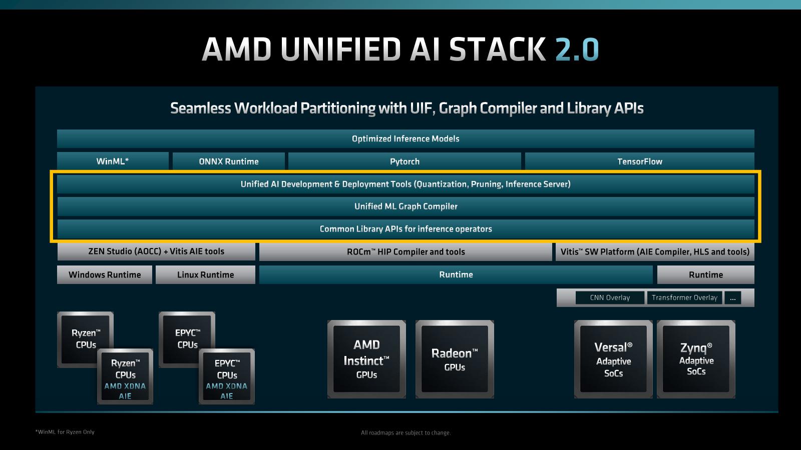 먼저 아마도 Zen 4/RDNA3/CDNA3 세대를 향해 먼저 Unified AI Stack 1.0을 출시한다. 단지 이 시점에서는 아직 위에 껍데기를 씌웠을 뿐으로, 내부 공통화에는 이르지 않았다.