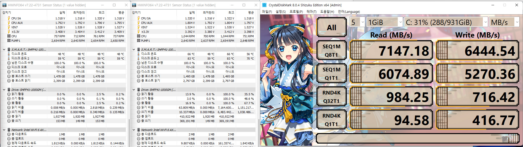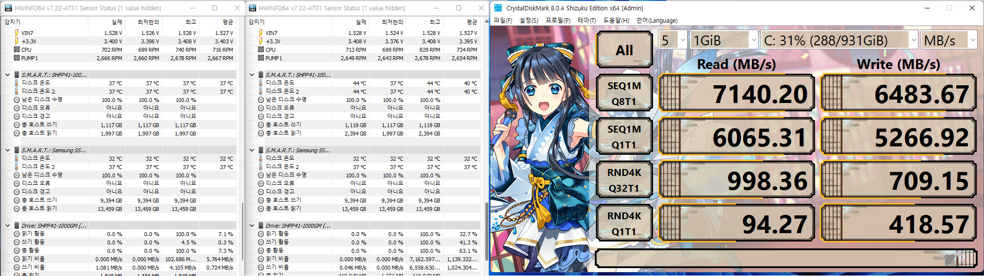 마이크로닉스 WARP SHIELD H 설치후, 가장 눈여겨봐야 할 부분은 [디스크 온도], [디스크 온도2] 온도차이가 없을 정도로 열 방출이 잘 되는 점입니다. 컨트롤러에 해당하는 [디스크 온도2]에서 DRAM에 해당하는 [디스크 온도]에 열이 전달되기도 전에 모든 열을 식힐 만큼 쿨링 효과가 좋다걸 보여주고 있습니다.