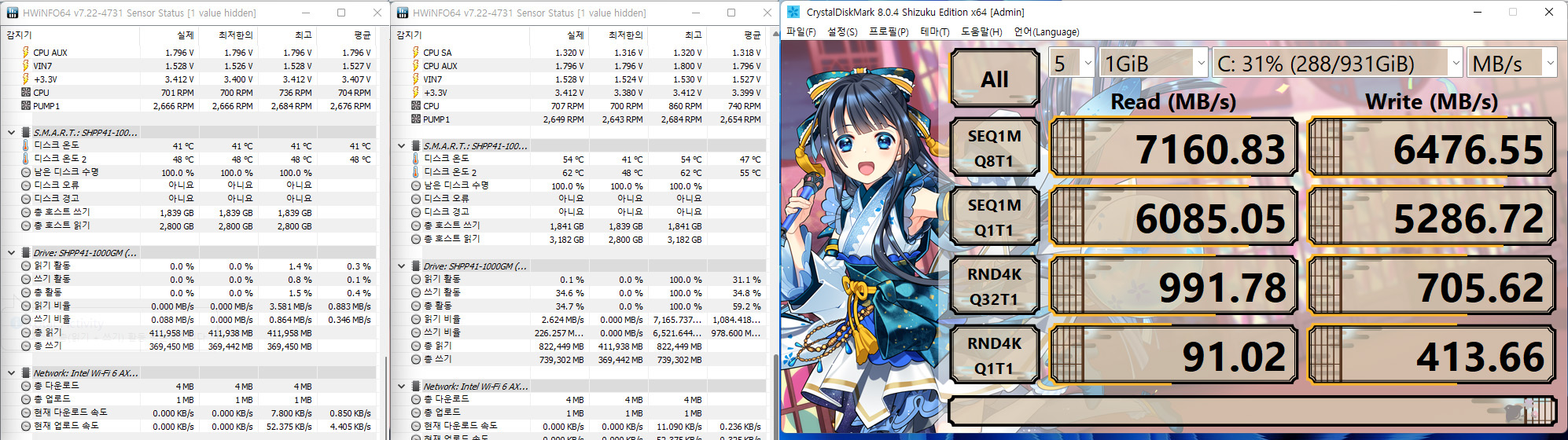 벤치시간이 짧은데도 큰 온도 차이의 결과가 나왔습니다. 짧은 시간의 벤치 결과상에서는 큰 차이가 없었겠지만, 용량이 큰 파일을 자주 읽고 쓰는등 사진, 동영상 편집 작업을 장시간 사용한다면 온도로 인한 쓰로틀링 방지하여 큰 작업 효과를 볼수 있을것으로 예상됩니다.