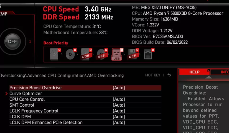 MSI 포럼의 관리자인 Svet에 따르면 MEG X570 Unify용 E7C35AMS 펌웨어는 추가 Vcore 오프셋, PBO(Precision Boost Overdrive) 및 Curve Optimizer를 잠금 해제했습니다. 포럼 사용자는 MSI가 사용자에게 Ryzen 7 5800X3D를 오버록하는 것을 권장하지 않는다고 주장합니다.
