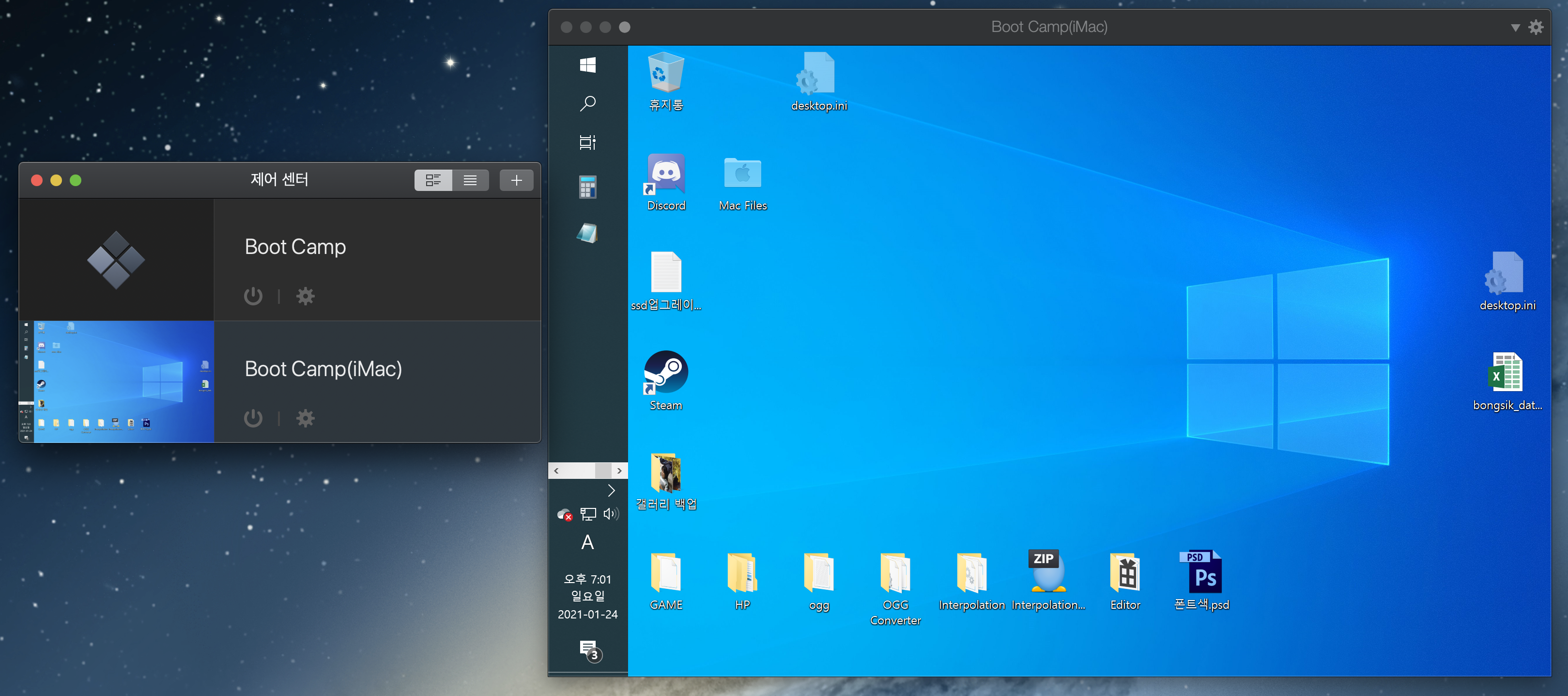 성능이 딱히 요구하지만 않고, 저장공간을 늘리고 싶다면, 실제 부트캠프를 지우고, Boot Camp(iMac).pvm만 사용해도 된다.