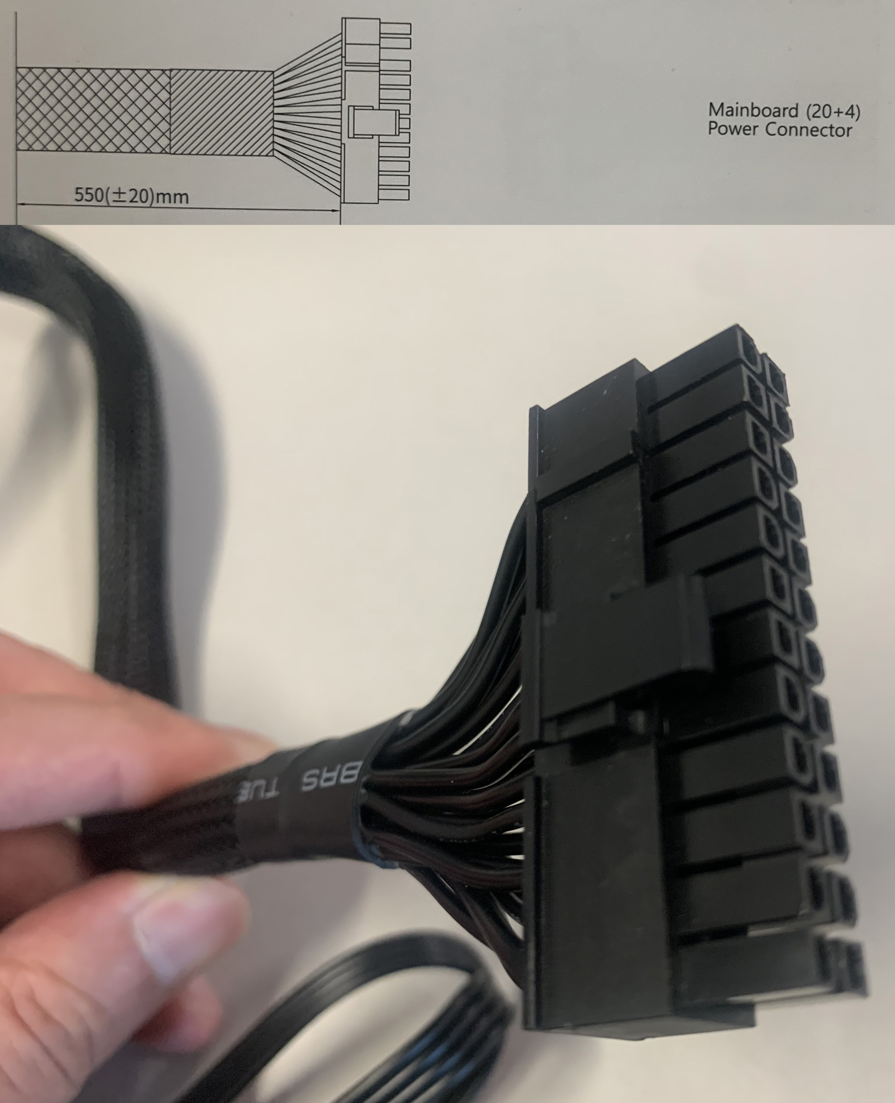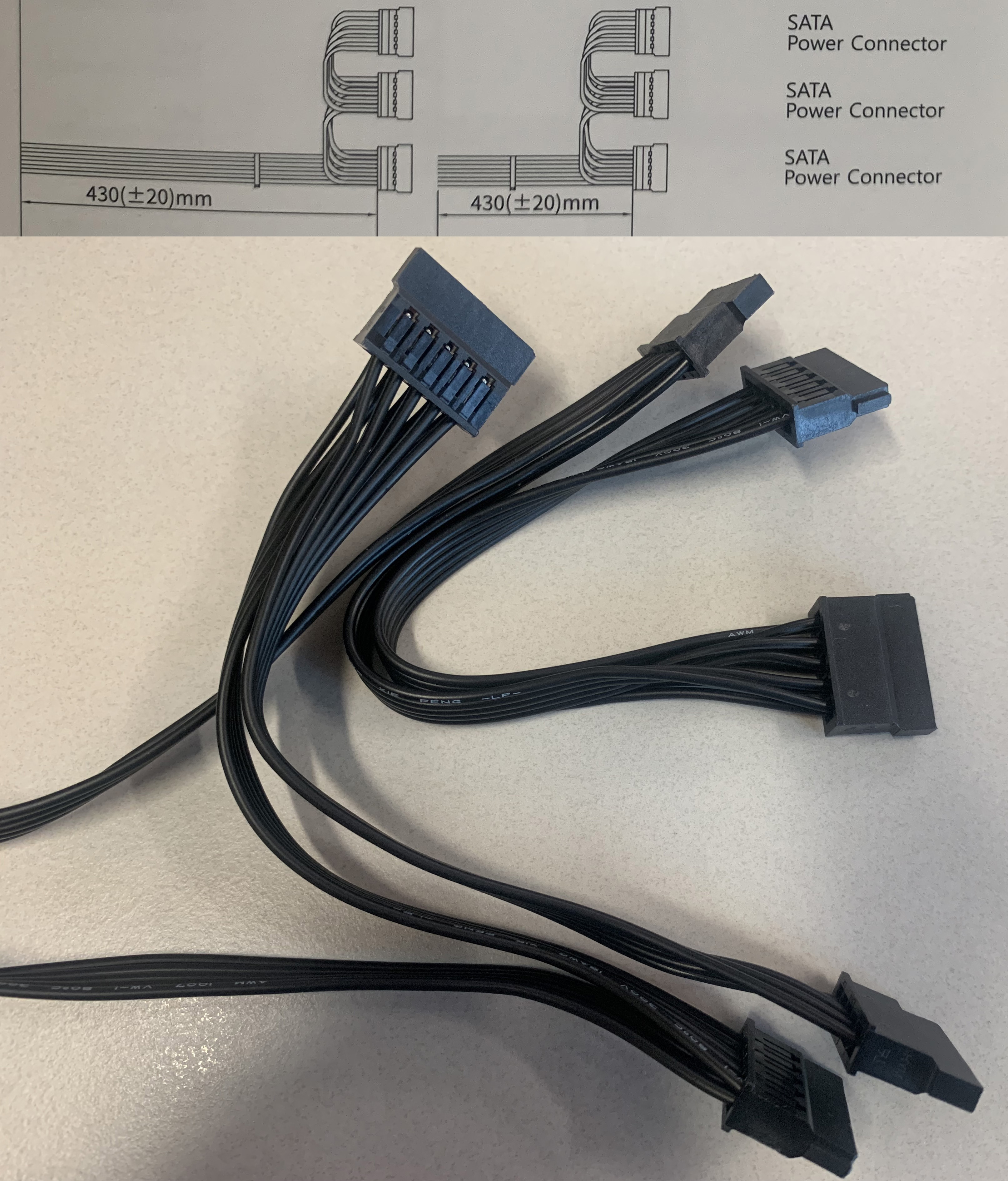 메인 전원 커넥트가 슬리빙 케이블이며, 그 외는 플랫 케이블로 구성되어 있어서, 조립시 깔끔하게 선 정리가 가능할거 같습니다. 그럼 각 케이블별 하나씩 살펴보도록 하겠습니다.