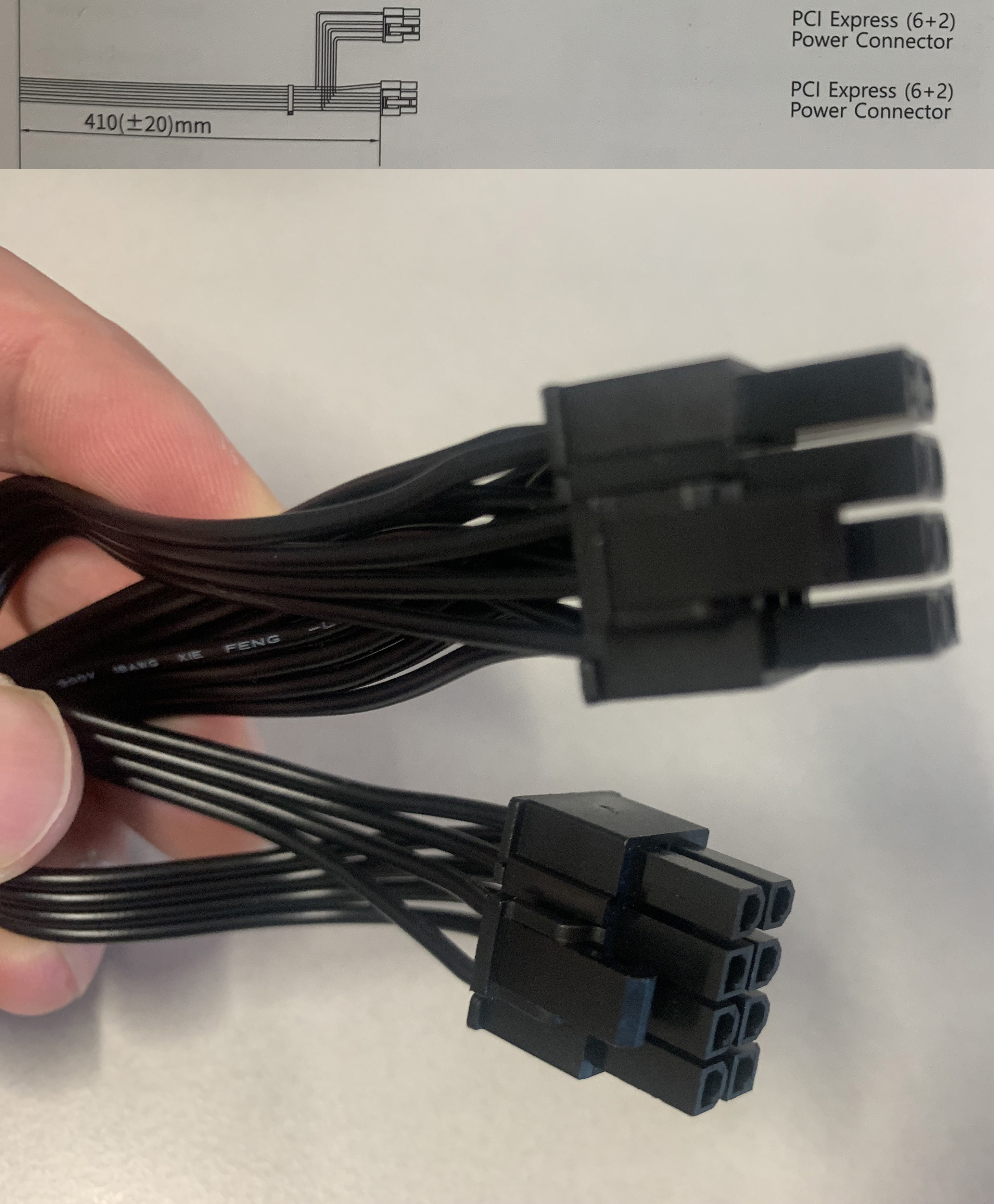 그래픽카드 보조전원으로 사용되는 PCIE 6+2핀 커넥터 2개가 있습니다.