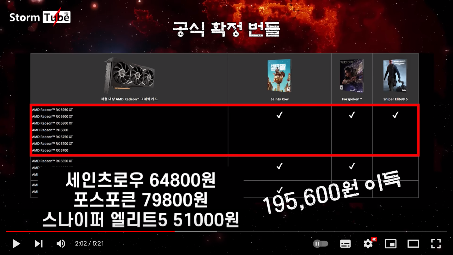 라데온 제품을 사면 번들로 게임까지 증정 해줍니다. 저렴한 그래픽 카드의 경우라면 거의 반값 수준입니다.