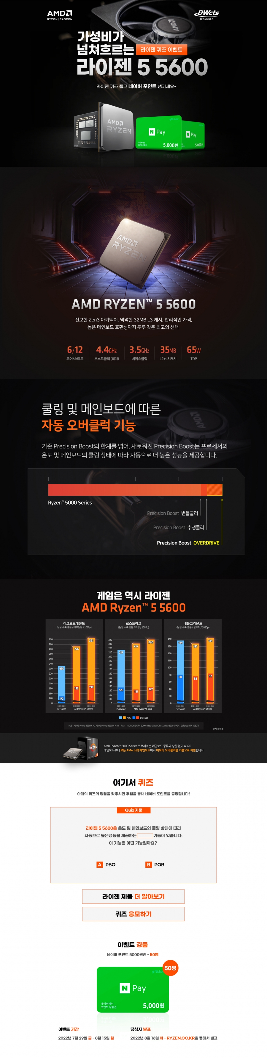 가성비가 넘쳐 흐르는 라이젠 5 5600 퀴즈 이벤트!IT 이벤트 2022. 8. 1. 23:28728x90