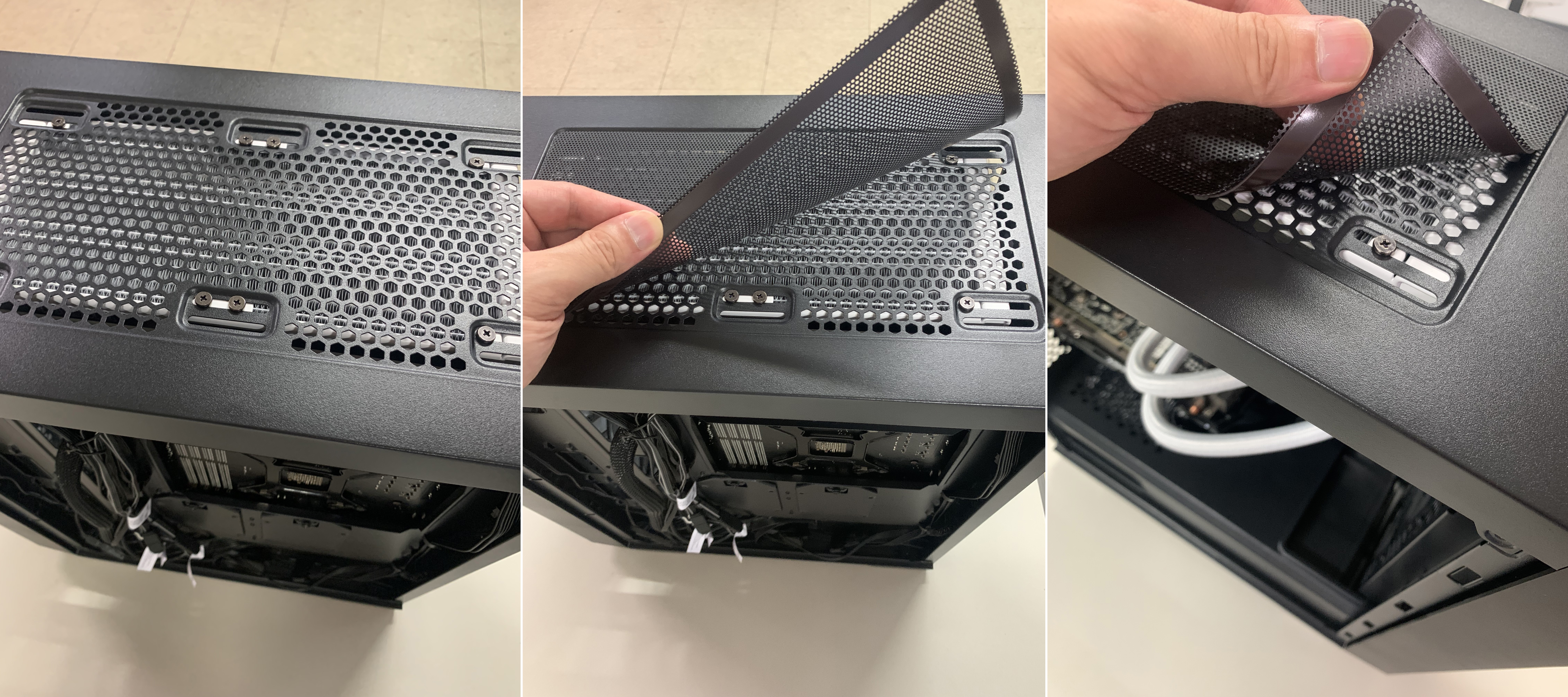 120mm 2열 수랭쿨러를 장착하고 자석식 상단 필터를 확인한 모습입니다.