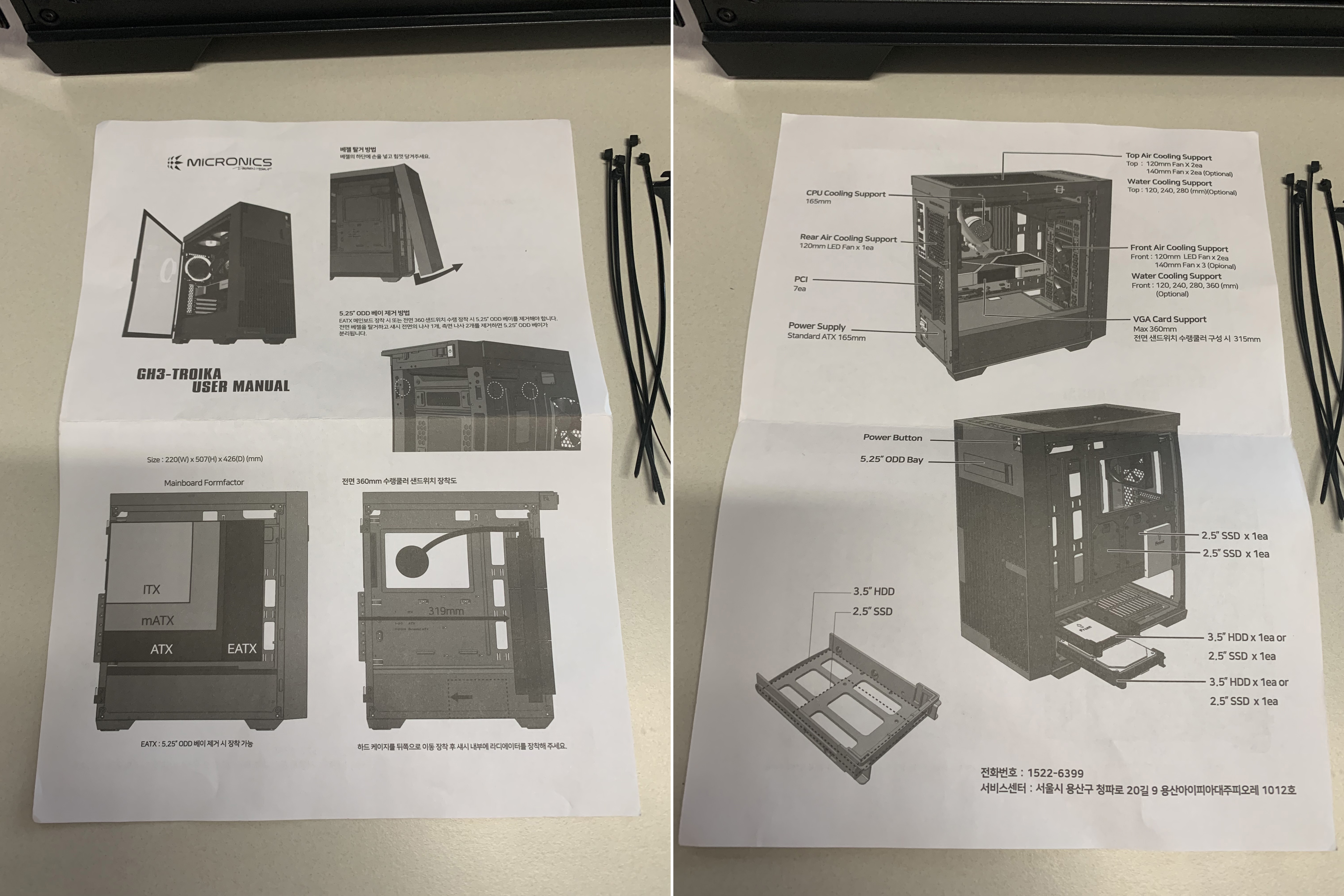 케이스 자체에 선정리가 쉽게 가능하도록 설계되어 있어서, 타이는 2개밖에 쓰지 않고도 깔끔하게 정리할수 있었습니다.