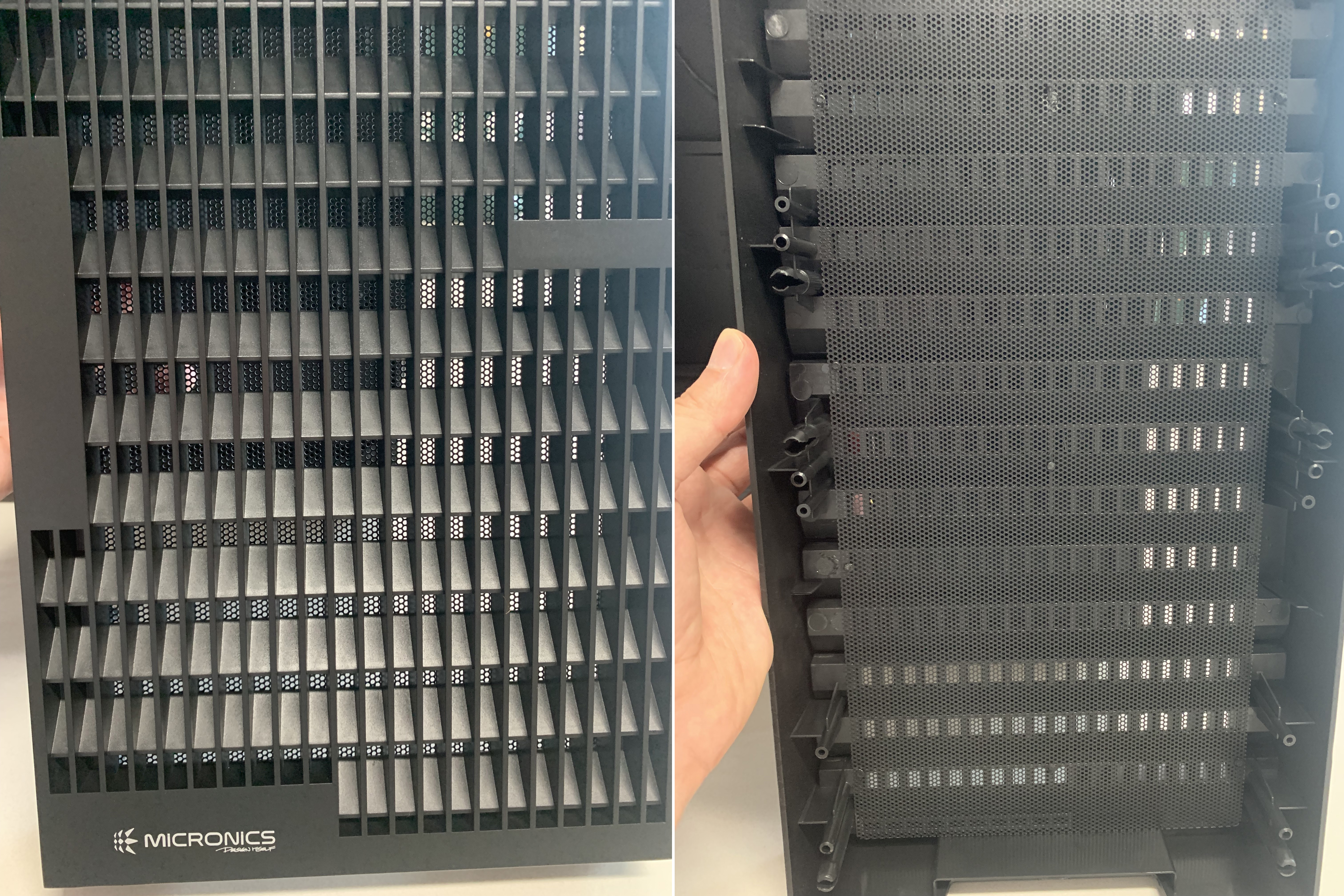 전면 패널을 분리한 상태인데, 먼지 필터가 일체형입니다. 메인보드와 연결선이 없기 때문에, 쉽게 먼지를 털어 낼수 있고, 물 청소가 가능하니까, 굳이 자석식 탈 부착이 아니라도 괜찮은거 같습니다.