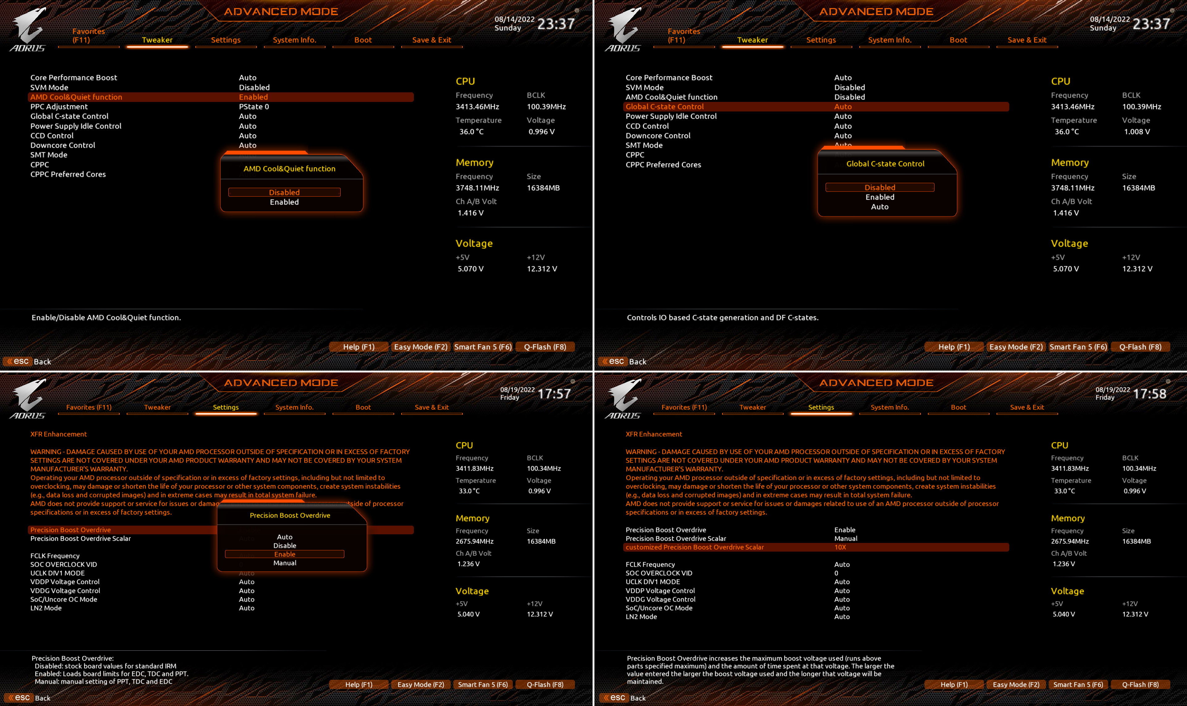 - Cool & Quiet, C-state Disable로 변경