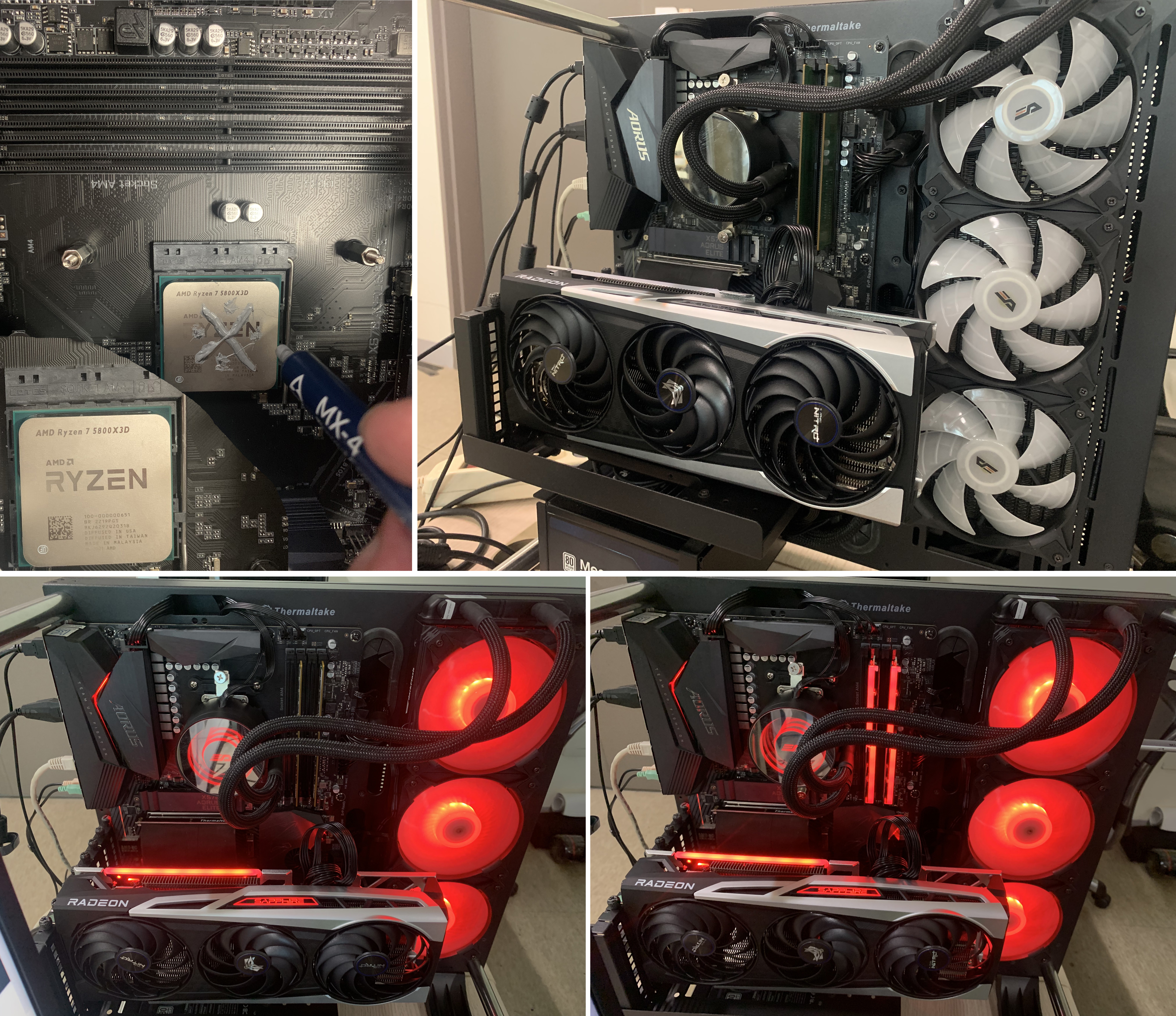 사용중이던 메인보드(Gigabyte x570 Aorus Elite 바이오스 F37c버전)에서 라이젠9 5900X를 제거 하고, 라이젠7 5800X3D로 교체 장착 했습니다. 써멀컴파운드는 ARCTIC MX-4 제품을 사용하고 당구장 표시로 도포했습니다.