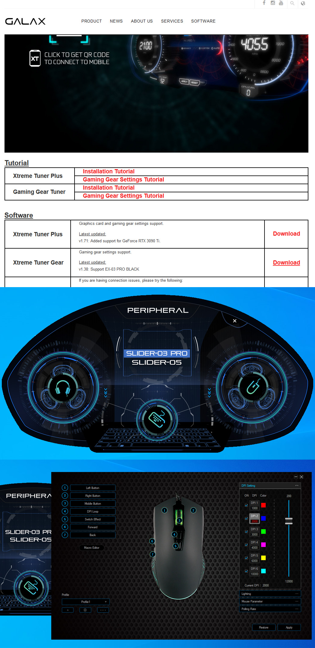 전용 소프트웨어(XTREME TUNER GEAR)를 지원하는데, 직관적인 UI로 제작되어서 본인이 원하는데로 설정을 쉽고 간편하게 변경이 가능합니다. 한글 사이트도 지원합니다. 다운로드 링크입니다. http://www.galax.kr/bbs/board.php?bo_table=data&wr_id=70