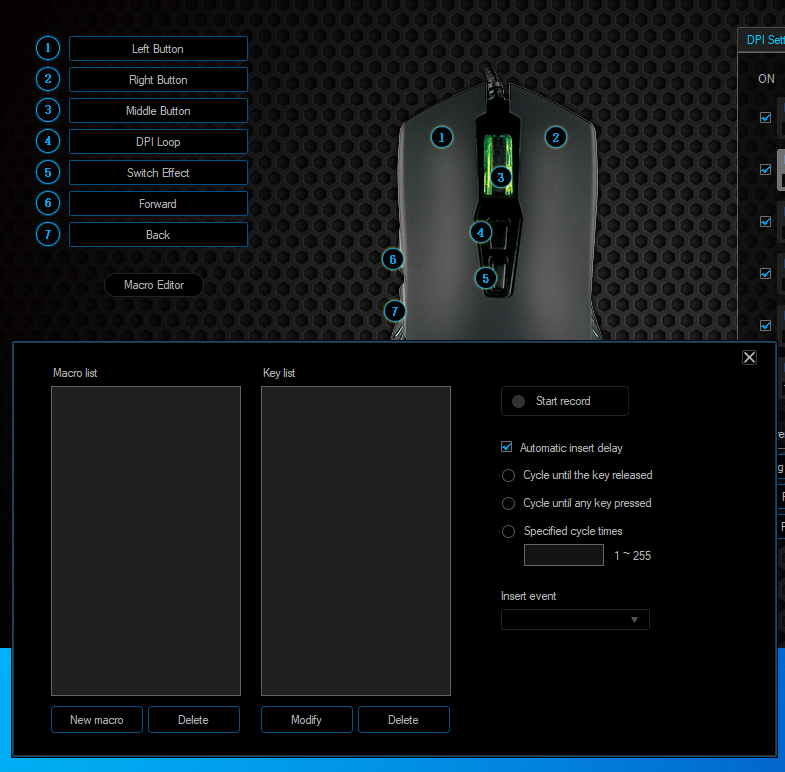 DPI는 기본 2000으로 설정되어 있으면 최소 200에서 최대 10000까지 변경이 가능합니다.