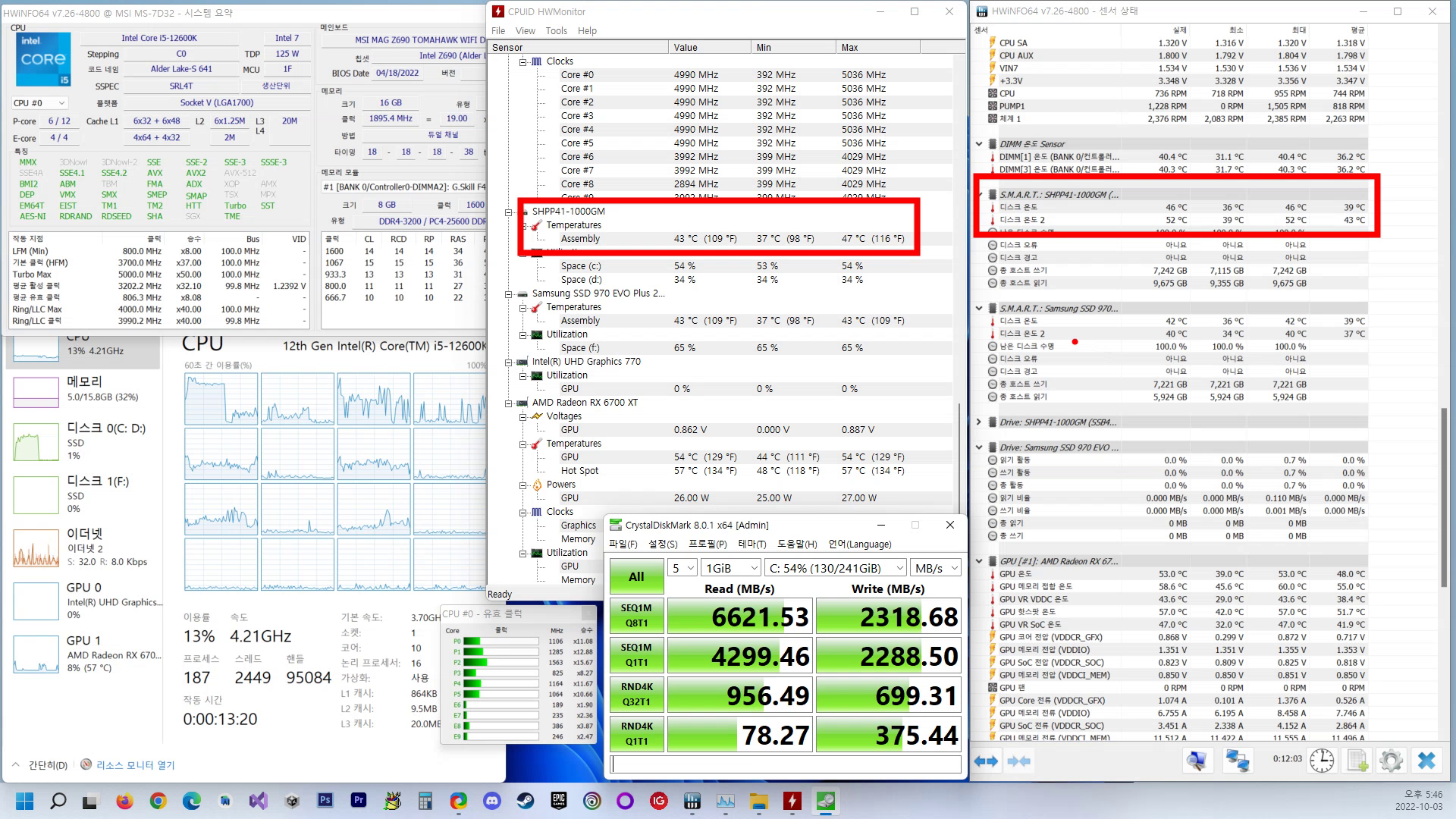 HWiNFO64에서는 최대 온도 46도까지 측정 되었습니다.(컨트롤러 온도는 39~52도였습니다)