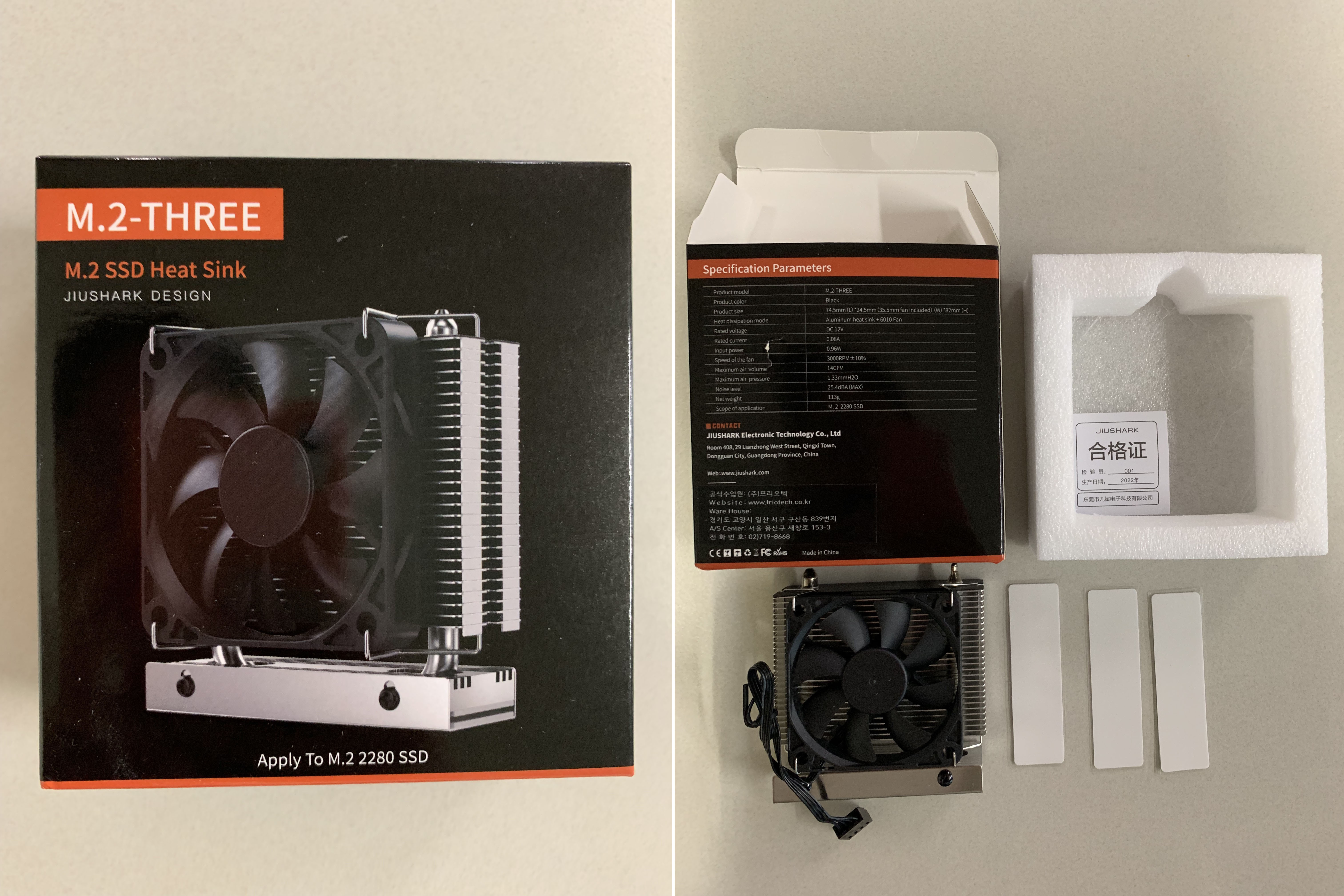 P31과 970 EVO PLUS사용할때는 온도가 심하게 오르진 않았는데, P41제품을 쓰면서 온도가 너무 올라가서 메인보드 방열판이 있다고 하더라도 솔직히 좀 불안하다고 느꼈습니다. 그래서 SSD 팬쿨러를 상상은 했는데, 정말로 제품이 출시할지는 몰랐습니다. 특가 행사때 운좋게 17,500원에 구매를 했습니다.