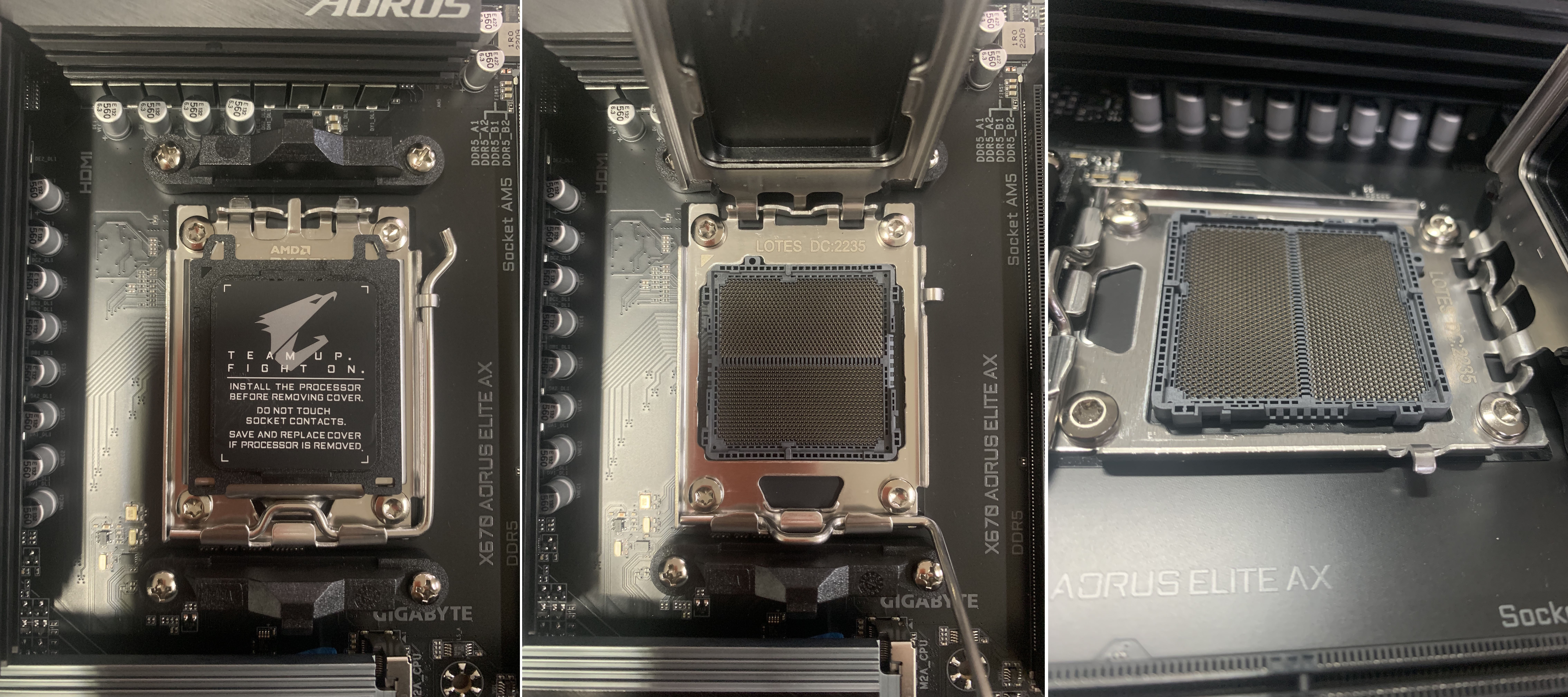 라이젠 1000~5000 시리즈까지 사용해 온 PGA(Pin Grid Array) 방식의 AM4에서 CPU쿨러 탈착시 흔히 "무뽑기" 현상 때문에 핀 파손 위협이 높았습니다. 이번에 출시한 라이젠 7000시리즈에서 오랜 기간 사용해온 AM4 소켓에서 AM5소켓으로 바뀌게 되었는데, 인텔과 같은 LGA(Land Grid Array) 방식으로 채택했습니다.