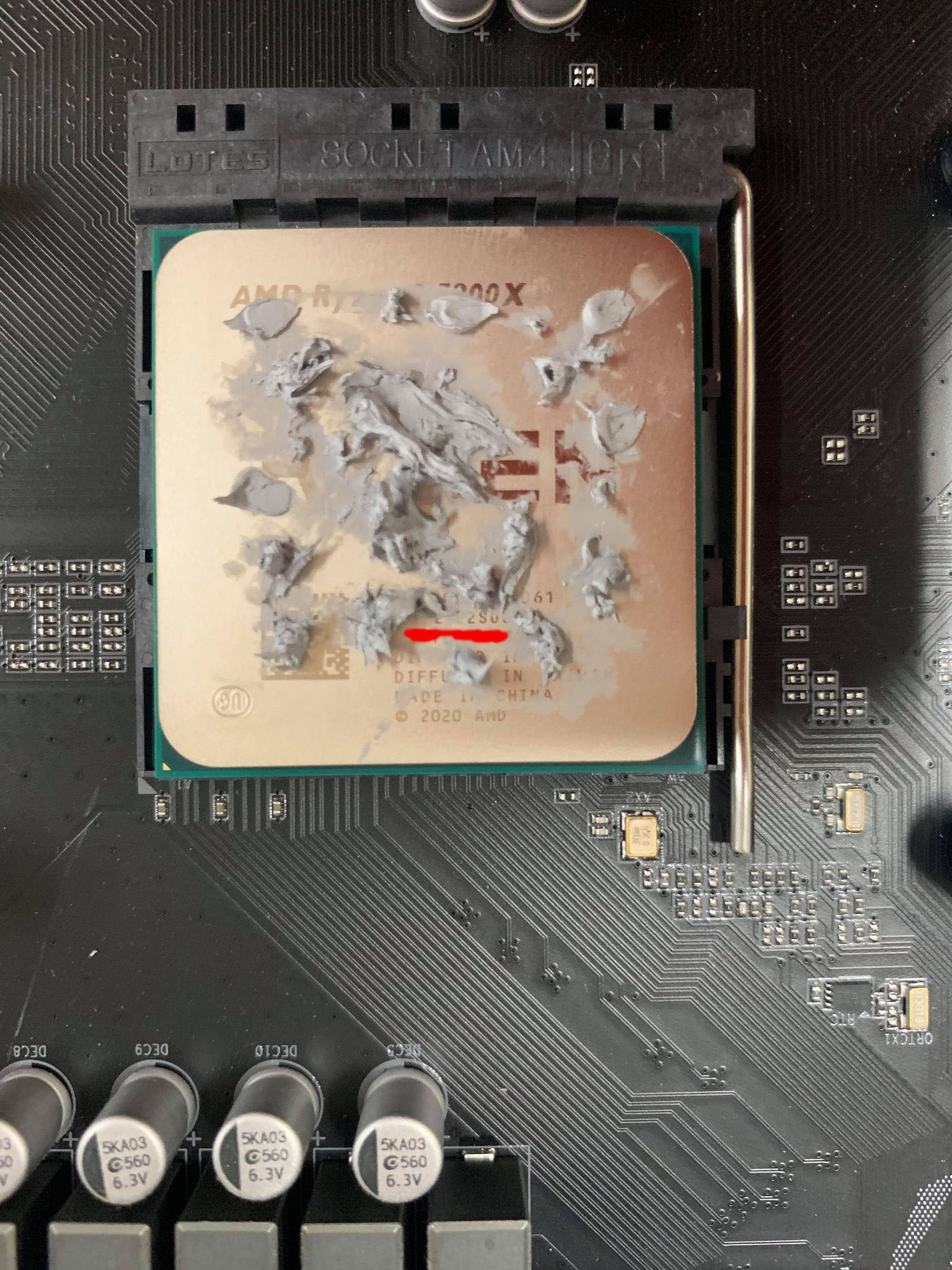 발라본 사람은 알겠지만, 이거 정말 잘 펴 바른거다. 어차피 몇일 사용하면 쫙쫙 펴진다. 3900X 이렇게 발랐는데, 온도 정말 잘 잡아낸다. 참고로 MX-4보다 온도 약 5~7도 정도 더 잘 잡아낸다. 진짜 이건 추천한다.