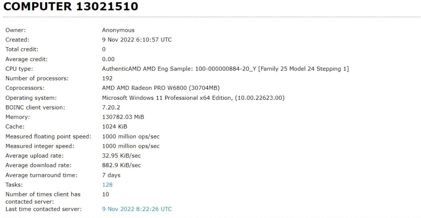 @BenchLeaks는 Einstein@Home 데이터베이스에서 Ryzen Threadripper 7000 프로세서의 두 가지 엔지니어링 샘플을 발견했습니다. 차세대 스레드리퍼의 코드명은 Storm Peak입니다. 이 두 엔지니어링 샘플의 OPN 코드는 100-000000884-21_N 및 100-000000884-입니다. 20_Y, 두 프로세서의 사양은 동일하고 내부에 Zen 4 CCD 12개, 코어 96개, 스레드 192개, L2 캐시 96MB, L3 캐시 384MB, 총 480MB가 있습니다.