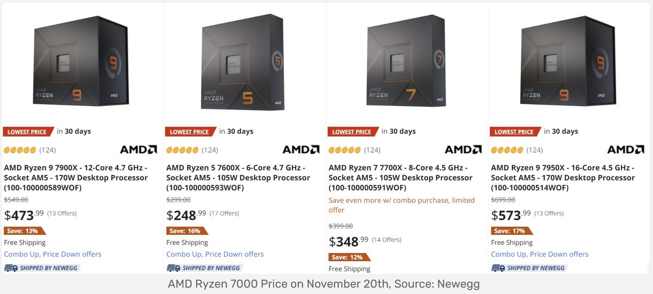 원문 - https://videocardz.com/newz/amd-ryzen-7000-gets-a-major-price-cut-on-newegg-ryzen-9-7950x-now-at-574