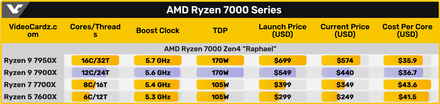 - Ryzen 9 7950X – 549.99달러 (더 이상 구매할 수 없음)