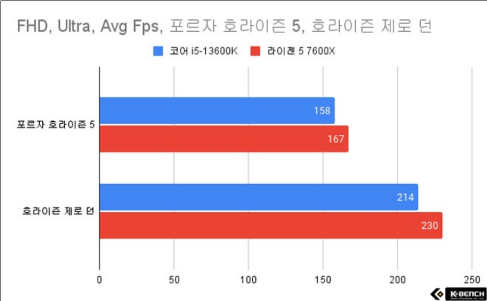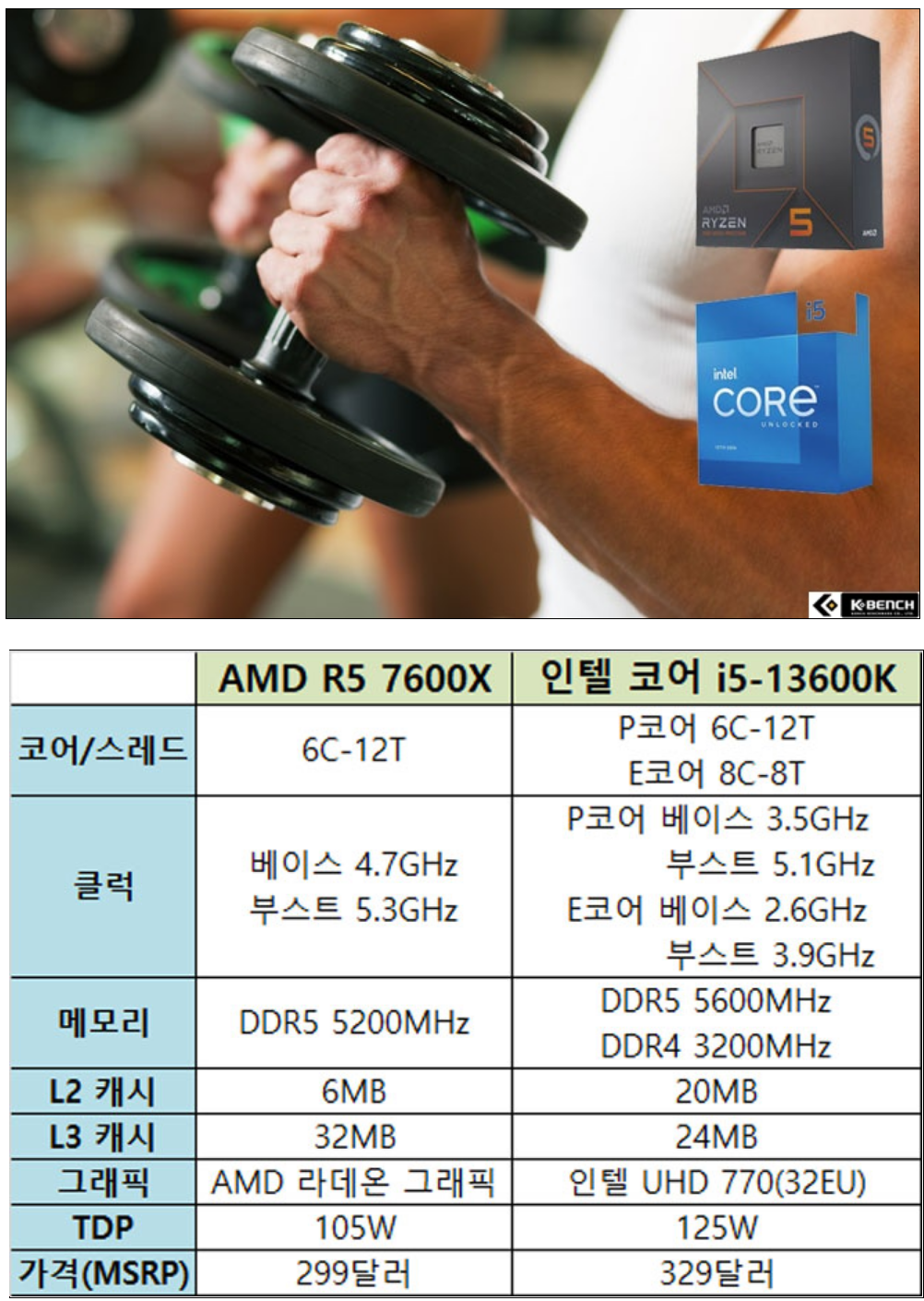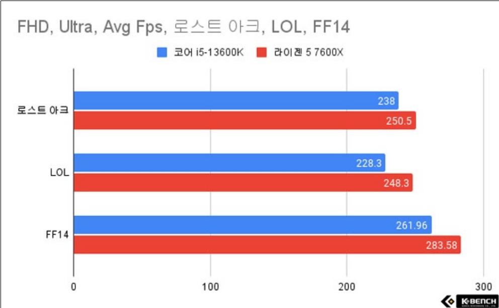 체급은 미들급 이상 그러나 당장은 막내 R5 7600X, i5-13600K, 인기 온라인 게임 성적은? | 케이벤치 기