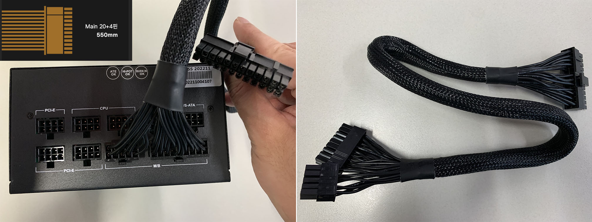 케이블을 메인보드에 먼저 연결하고, 파워 본체에 나중에 연결하니까 조립이 아주 편했습니다.(오픈형 케이스 훨씬 편함)