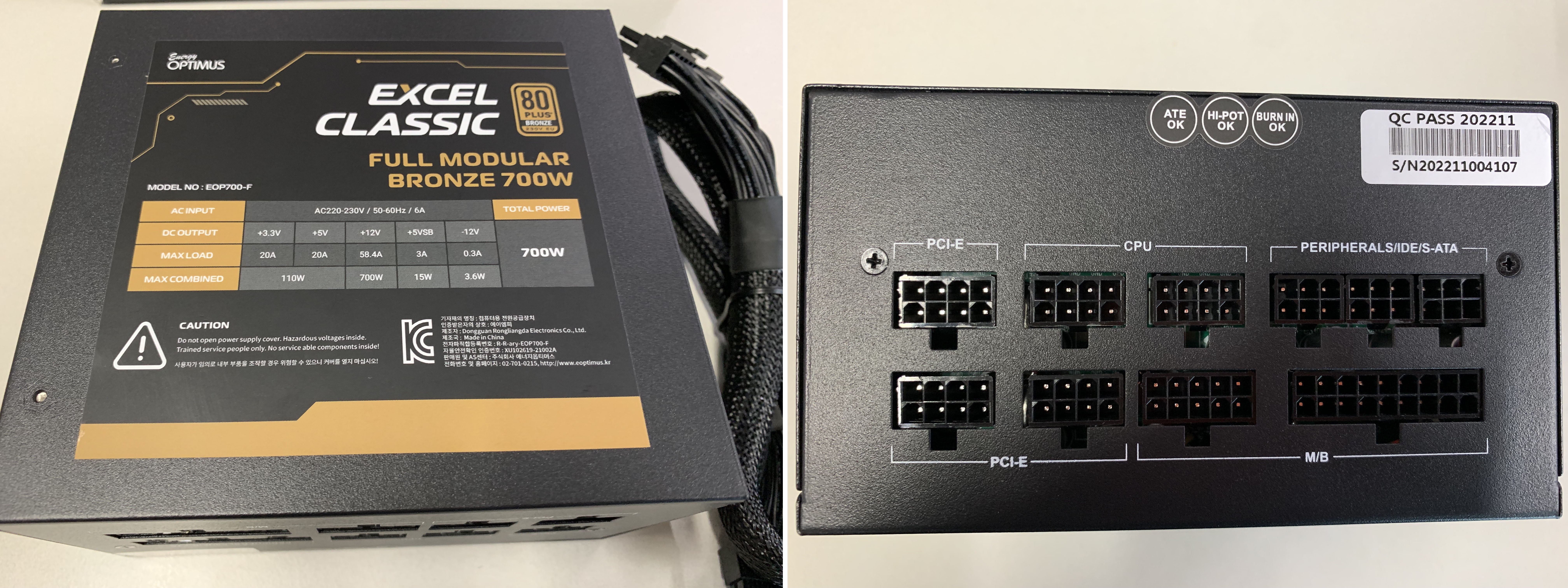 에너지옵티머스 EXCEL CLASSIC 700W 80PLUS BRONZE 230V EU FULL MODUAL 제품 소개하겠습니다.