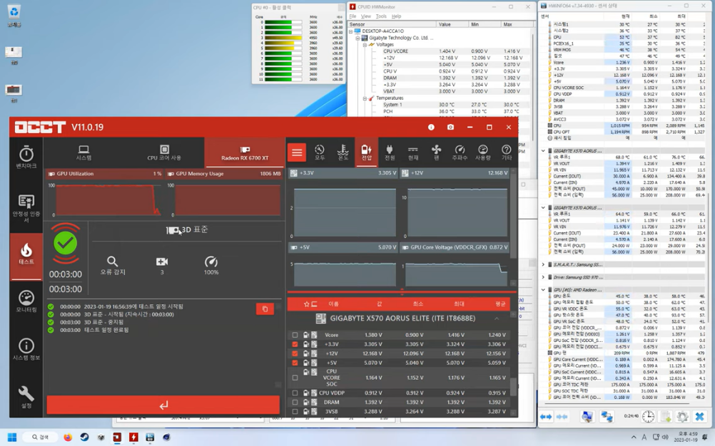 OCCT 결과 => 12V : 12.096 ~ 12.168, 5V : 5.040 ~ 5.070, 3.3V : 3.305 ~ 3.324