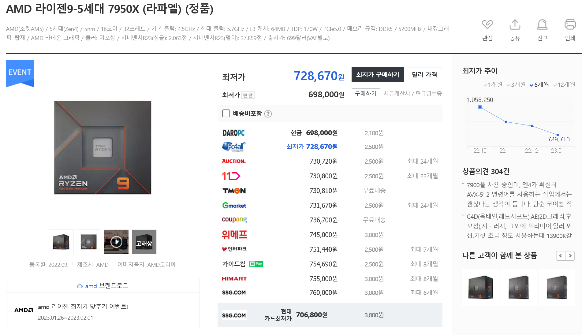라이젠 7000시리즈가 출시한지 2022년 9월말에 출시하고, 20~30%가 하락한거 같습니다.