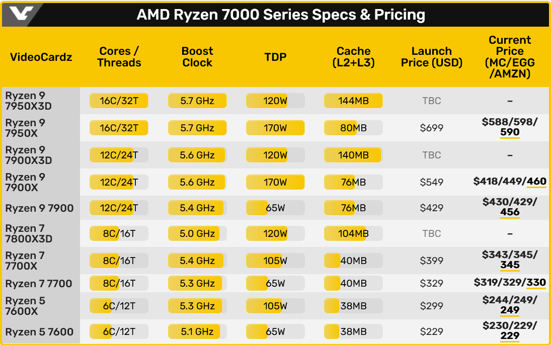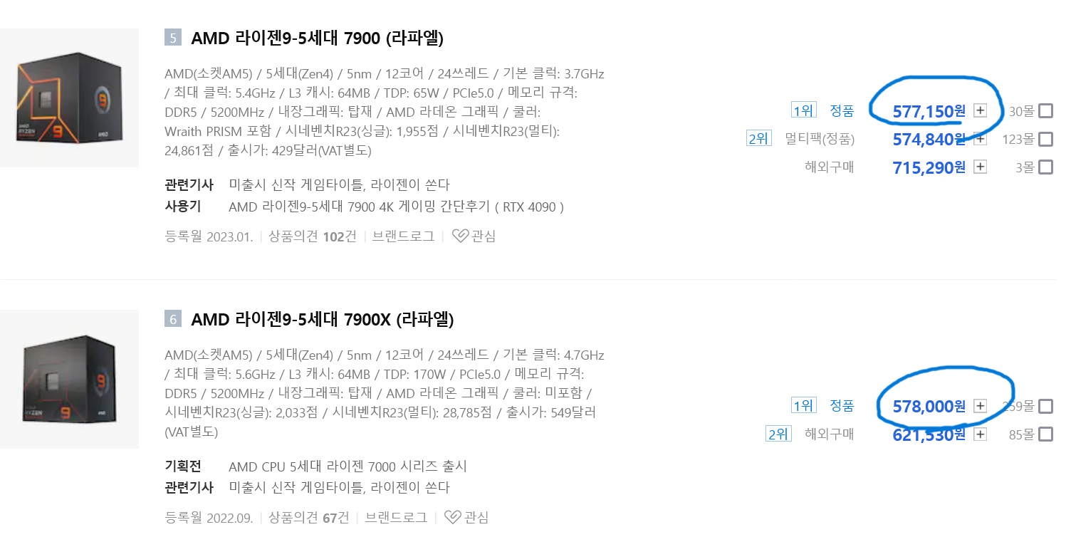 MicroCenter에서는 7900X가 7900보다 저렴하고, 150달러 상당의 DDR5-6000 32GB를 무료로 함께 제공한다고 합니다. 다나와에서는 비슷한 가격대로 판매되고 있습니다. 한국에서도 이런 행사하면 정말 좋을텐데 아쉽습니다.
