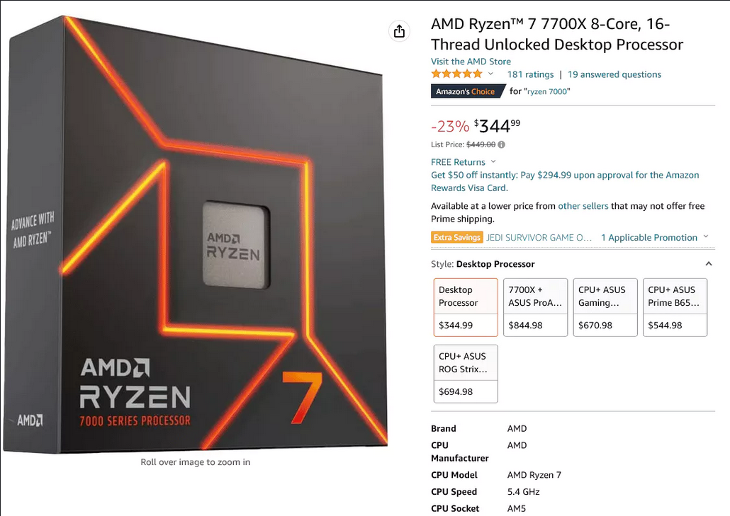 AMD의 Ryzen 7000 프로세서는 또 다른 가격 인하를 받아 경쟁 Intel Core 13세대 제품보다 훨씬 저렴합니다. 업데이트된 가격이 Amazon 및 Microcenter에 적용되었으며 Newegg가 곧 뒤따를 것입니다. Ryzen 7 7700X부터 출시 가격이 449달러에서 344.99달러로 낮아졌습니다. 경쟁 제품인 Core i7-13700K는 현재 418달러에 판매되고 있습니다.