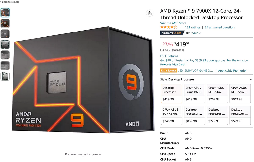 Microcenter는 비슷한 할인 혜택을 제공합니다. Newegg와 Microcenter는 비 X 라인업에 대해 더 나은 가격을 제공합니다. Ryzen 9 7900은 429.99달러, 7700은 319.99달러, 7600은 229.99달러입니다. 이는 비 K Raptor Lake 부품의 가격과 거의 같습니다.