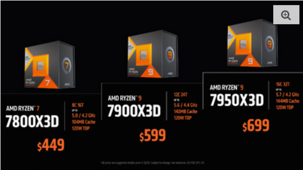 - Ryzen™ 7 7800X3D($449 USD)