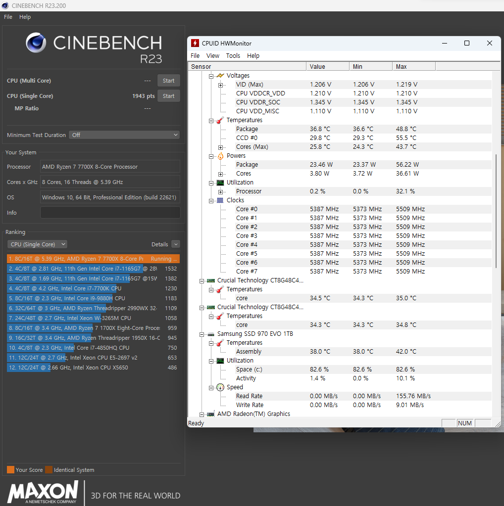테스트한 라이젠7 7700X는 8코어 16스레드로 온도가 높은 측에 속하는 고성능 CPU를 54배수로 오버클럭한 상태인데도 불구하고, 열전도율이 높아서 그런지 쿨링에 전혀 손색이 없는 결과가 나왔습니다.