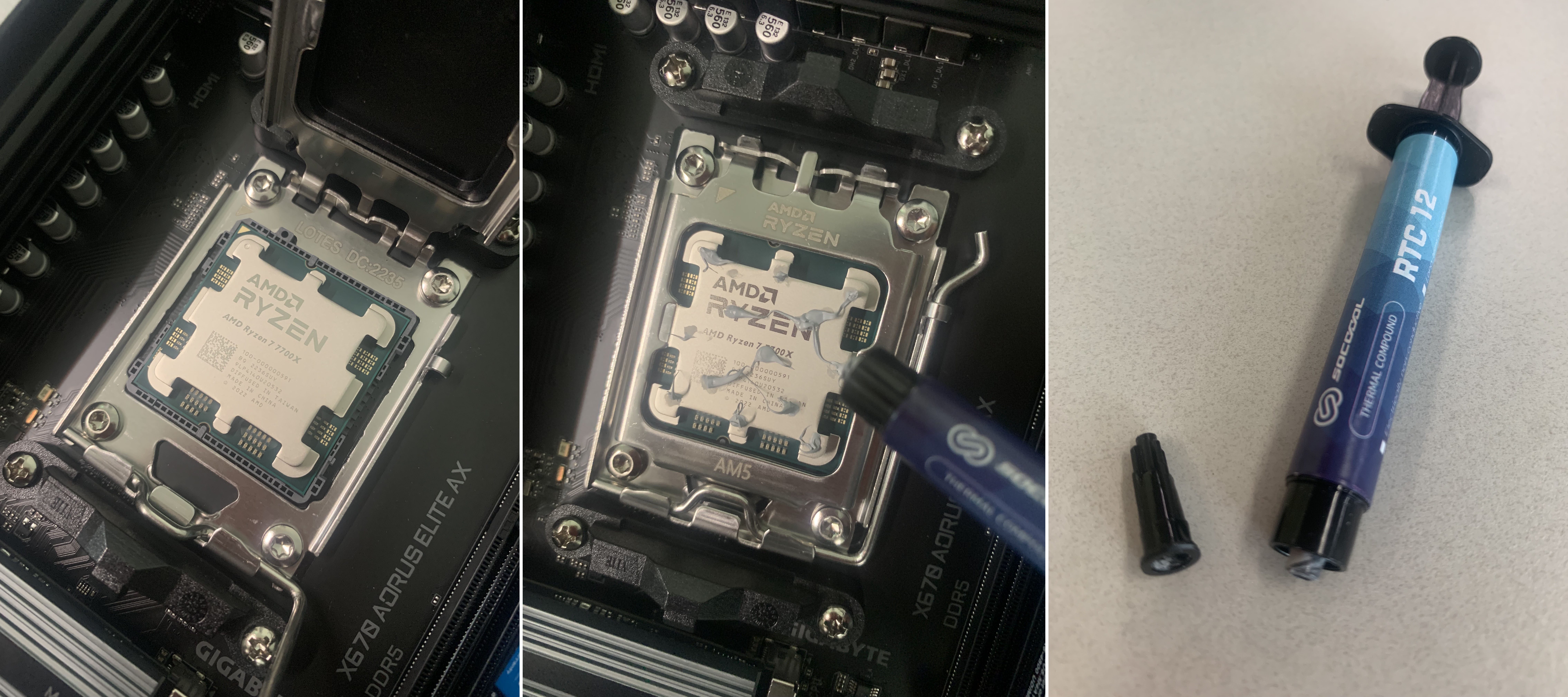 업그레이드한 CPU가 라이젠7 7700X인데, 써멀컴파운드를 당구장 표시를 해왔었는데, 히트 스프레더 모양이 바뀌어서 약간의 변화를 두었습니다.