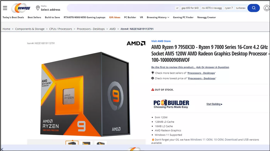 출처 : https://www.tomshardware.com/news/ryzen-7950x3d-listing-appears-on-newegg