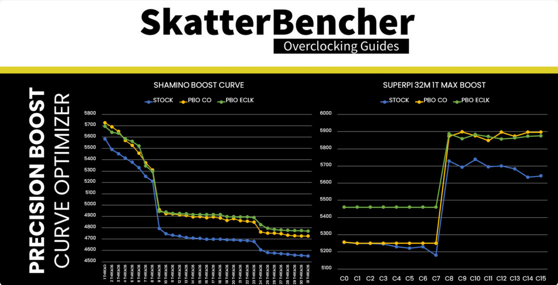PBO2 및 전압/주파수 곡선 옵티마이저를 활성화하면 오버클럭커는 CPU가 더 높은 주파수를 달성하도록 강제할 수 있습니다. 이를 위해서는 많은 미세 조정이 필요하지만 이 전략은 Fmax 주파수를 5900MHz로 높일 수 있습니다. 이 방법은 V/F 곡선을 낮추어 CPU 클록을 강제로 높이는 것과 관련이 있지만 실제로 Raphael CPU에서 사용할 수 있는 ECLK 기능을 활용하는 더 나은 방법이 있습니다.