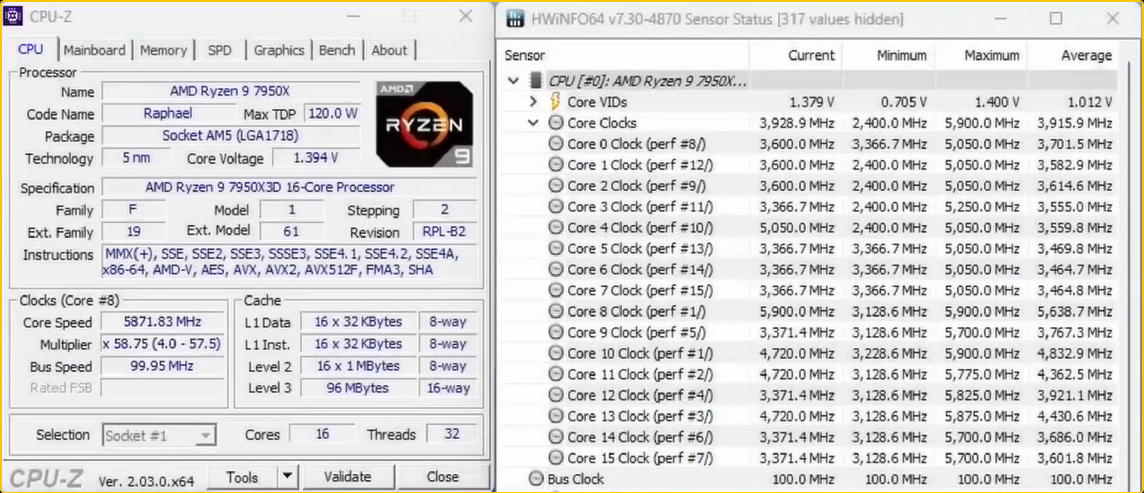 출처 : https://videocardz.com/newz/amd-ryzen-9-7950x3d-has-been-overclocked-to-5-9-ghz-and-delidded