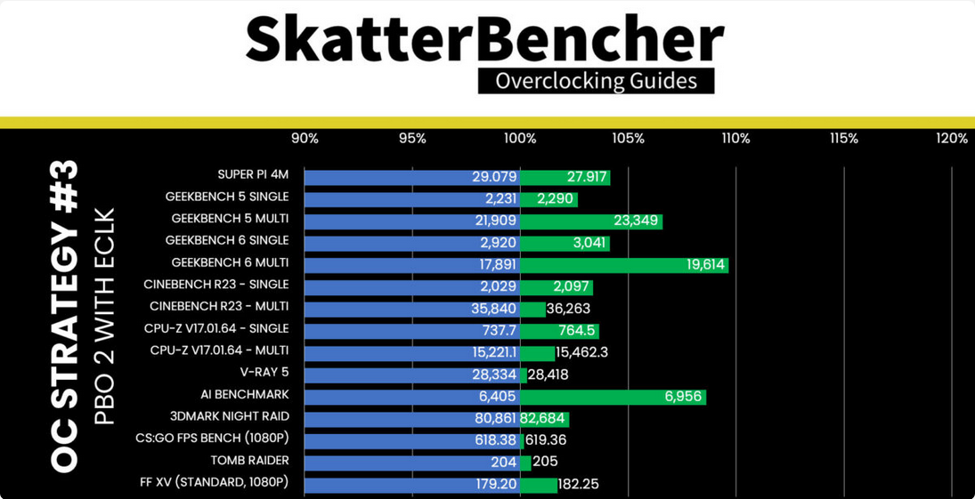 요점은 Ryzen 7000X3D 시리즈는 여전히 오버클럭이 가능하지만 ECLK 및 VF 조정이 필요하여 일부 사용자에게는 복잡할 수 있다는 것입니다(SB에는 단계별 가이드가 있음). 또한 마일리지는 냉각 솔루션, 마더보드 사용 및 각 Ryzen 샘플의 용량에 따라 달라집니다.