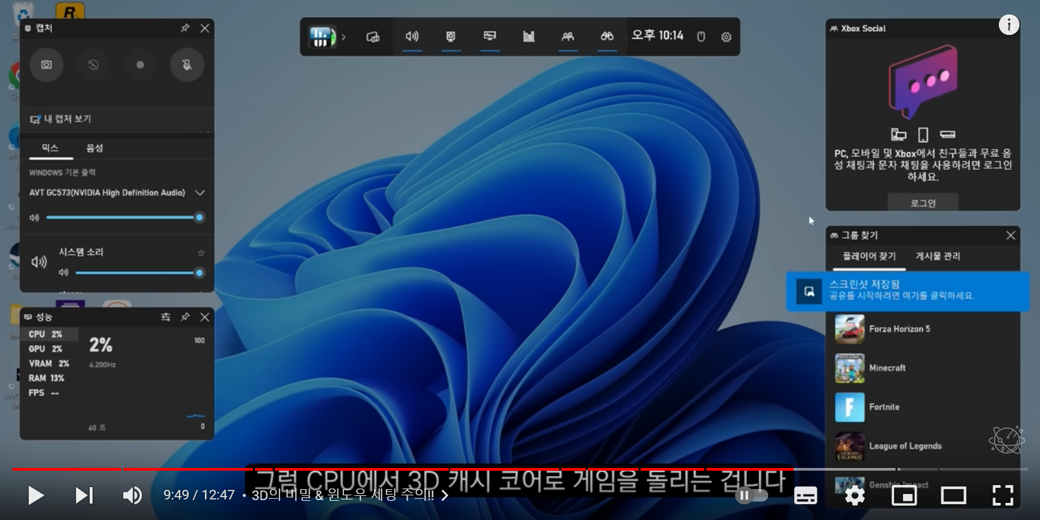 5. Game Bar에서 3D 캐시코어로 해당 게임을 돌리도록 합니다.