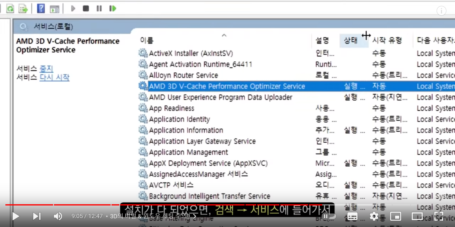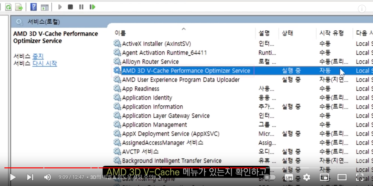 2. 서비스에서 3D V-Cache 실행되는지 확인