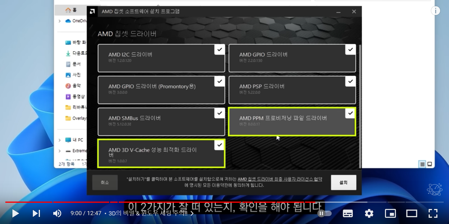 1. AMD 칩셋 드라이버에서 3D V-Cache 성능 최적화, AMD PPM 프로비저닝 2가지 요소 설치합니다.