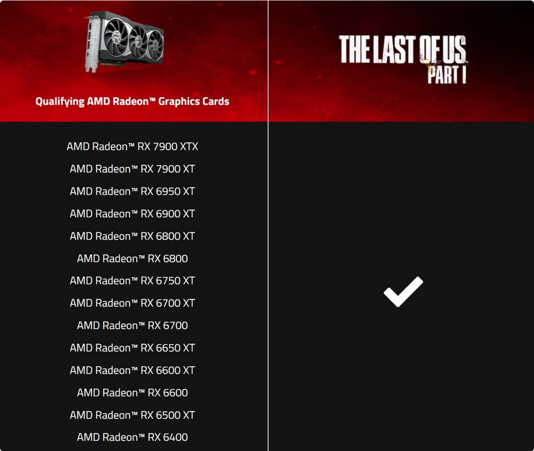 출처 : https://videocardz.com/newz/amd-to-bundle-the-last-of-us-part-i-with-radeon-rx-7900-and-rx-6000-gpus
