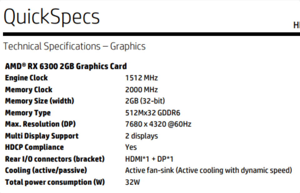 데스크톱과 모바일 변형의 유일한 차이점은 GPU 성능입니다. 데스크톱 RX 6300의 정격 전력은 32W이고 모바일 버전의 GPU 전력은 최대 25W입니다. 데스크탑 카드에는 한 쌍의 DisplayPort 커넥터도 장착되어 있습니다.