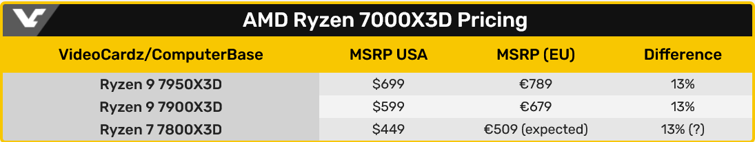 출처 : https://videocardz.com/newz/amd-ryzen-7-7800x3d-already-listed-in-europe-for-at-least-530-euro