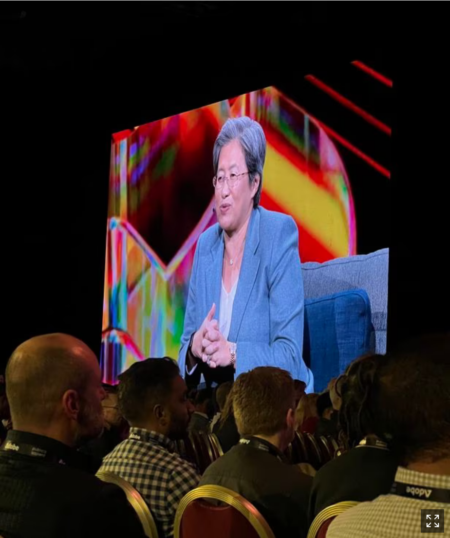 리사 수 AMD 최고경영자(CEO)는 22일(현지 시각) 미국 라스베이거스 베네시안호텔에서 열린 어도비 연례 콘퍼런스 ‘서밋’에 참석, 샨타누 나라옌 어도비 CEO와 대담 중 “생성형 AI의 핵심은 ‘인간의 삶을 어떻게 더 윤택하게 만들 것인가’에 있다”며 이렇게 말했다. 수 CEO는 “바야흐로 ‘AI의 시대가 왔다’고 해도 어색하지 않을 정도로 생성형 AI는 최근 전 세계에 큰 파장을 일으키고 있다. 하지만 아직 개발 초기 단계에 있는 만큼 생성형 AI가 실질적으로 기업의 생산성을 높이는 수준에 이르기까지 갈 길은 멀어 보인다”며 “기업 업무의 50%가 80%가 됐든 효율을 높일 때에야 생성형 AI는 비로소 가치를 가질 것”이라고 했다.
