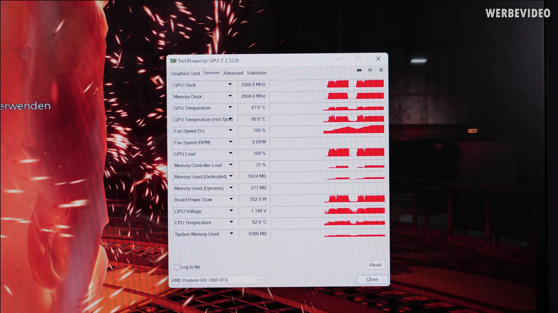 AMD의 주력 제품인 Radeon RX 7900 XTX GPU는 Der8auer 의 표준 수냉식에서 인상적인 3.4GHz 클럭 속도로 오버클럭되었습니다 .