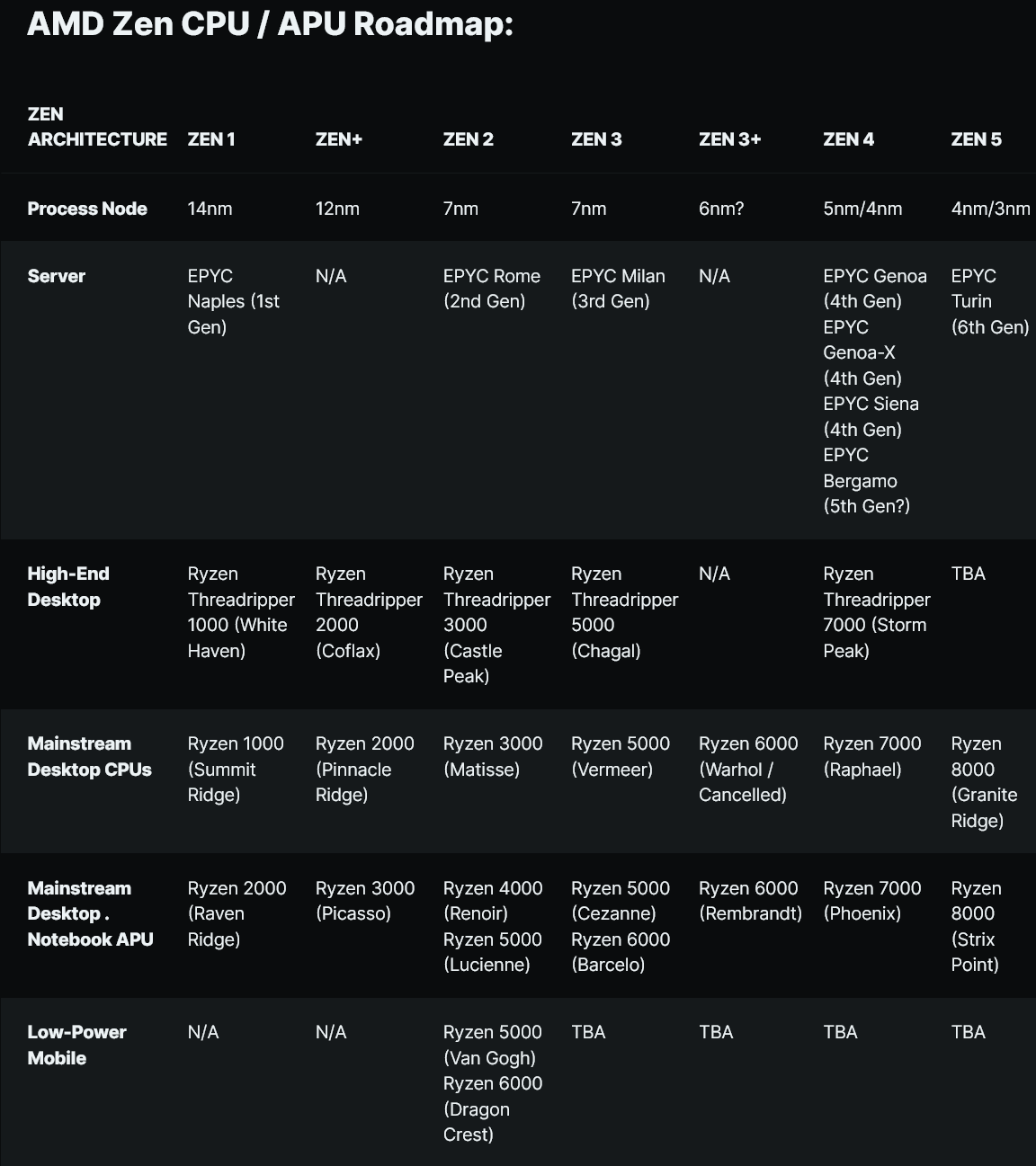 여기서 정확히 어떤 새로운 Ryzen 데스크톱 CPU 라인업이 언급되고 있는지는 알 수 없지만 기존 Zen 4 기반 Ryzen 7000 데스크톱 CPU를 새로 고칠 수도 있고 AMD에서 코드네임이 지정된 Zen 5 Ryzen 8000 CPU 라인을 제공할 것으로 보입니다 . 올해 말까지 Granite Ridge . AMD Ryzen 7000 데스크톱 CPU 라인업은 작년 2022년 3분기에 출시되었으므로 올해 말까지 새로운 Ryzen 프로세서 제품군을 보유하는 것이 합리적입니다.