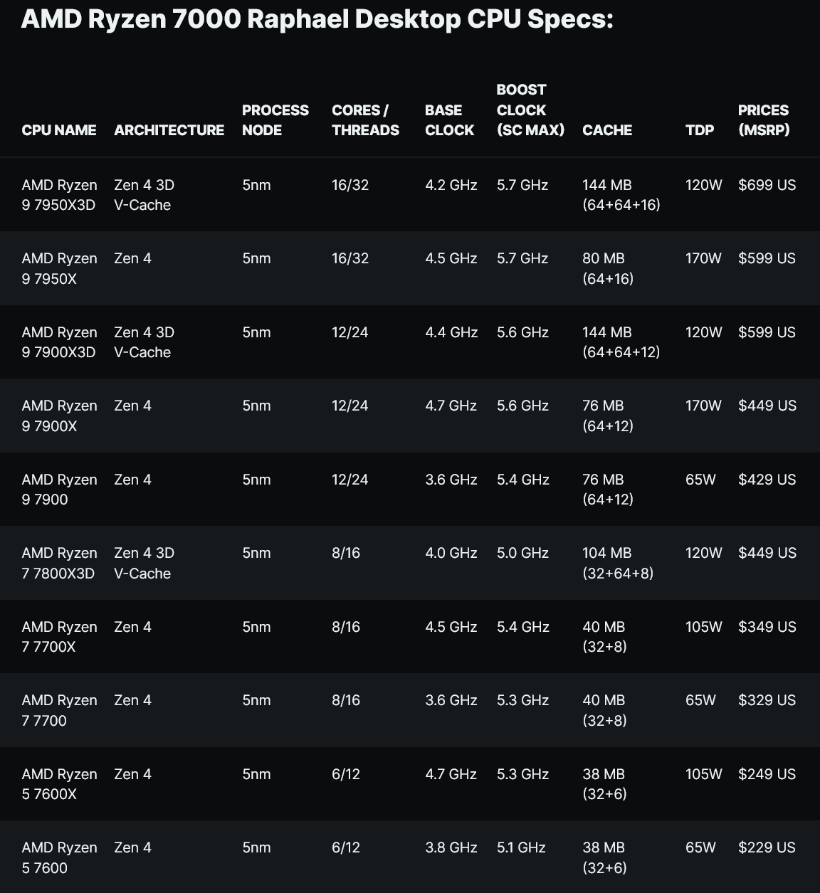 비교를 위해 미국에서 이 칩의 최저 가격은 Ryzen 9 7900의 경우 $399 , Ryzen 7 7700의 경우 $319 , Ryzen 7 7700의 경우 $219 이며 모두 Microcenter에서 판매됩니다. 이에 더해 중국 가격은 4%에서 최대 11%까지 낮아져 새로운 Ryzen 및 AM5 시스템을 구매하기 위해 버텼던 아시아 시장의 PC 게이머들에게 희소식입니다.